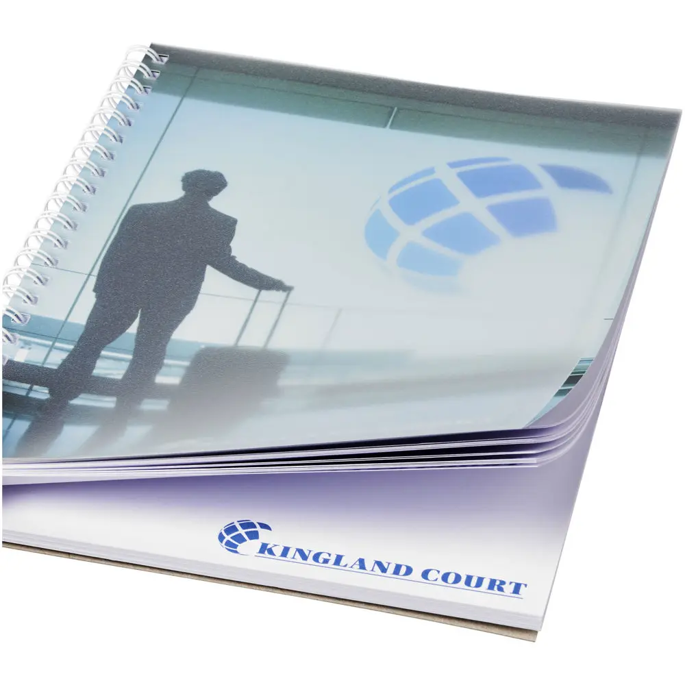 Découvrez le cahier Desk-Mate® A5 à spirales, idéal pour vos campagnes marketing et événements. Ce bloc-notes compact (21 x 0,5 x 14,8 cm) offre 50 feuilles de papier 80 g/m² vierge, avec une couverture transparente en polypropylène durable (500 microns). Optez pour 100 feuilles selon vos besoins. Personnalisez les pages avec des motifs sur mesure – ligné, quadrillé ou pointillé – pour une touche unique.