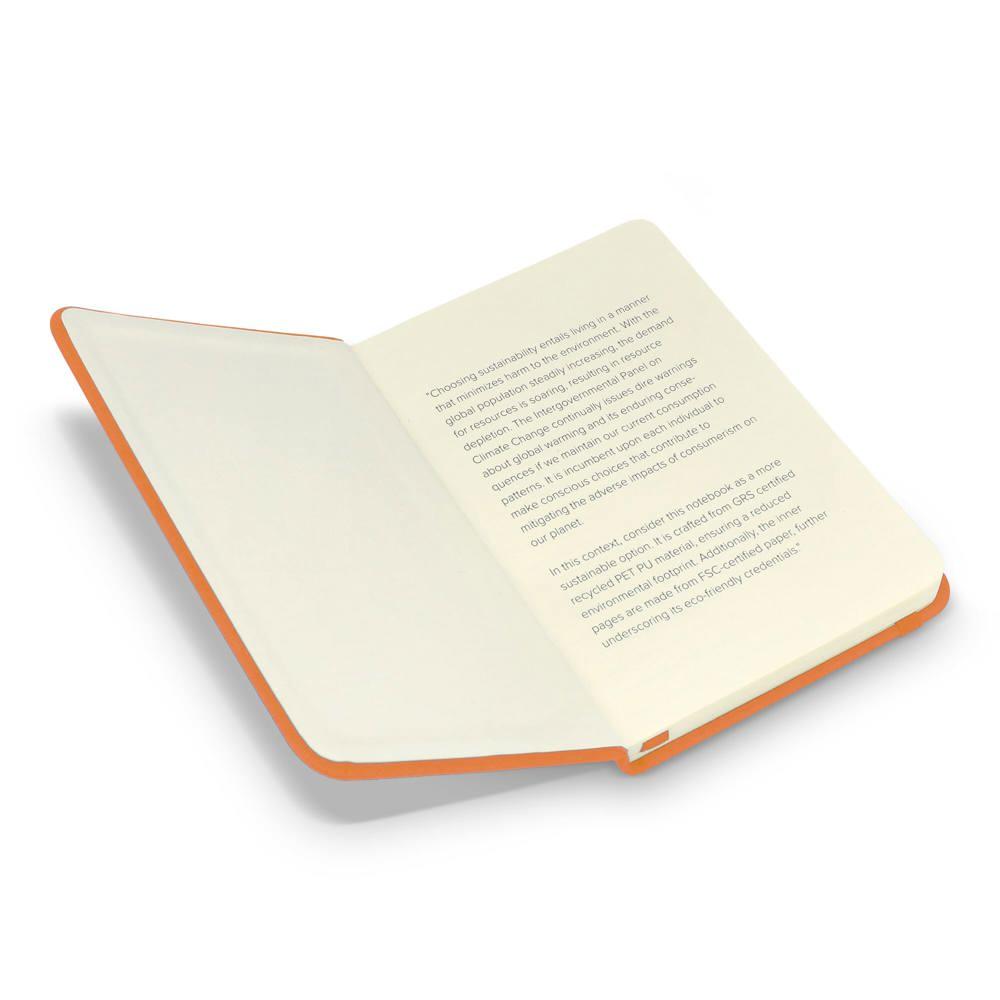 Découvrez notre cahier A6 personnalisable, idéal pour vos campagnes marketing et événements d'entreprise. Fabriqué en matériaux durables R-PET et PU avec pages certifiées FSC, il allie écologie et praticité pour noter idées et rendez-vous en toute mobilité.