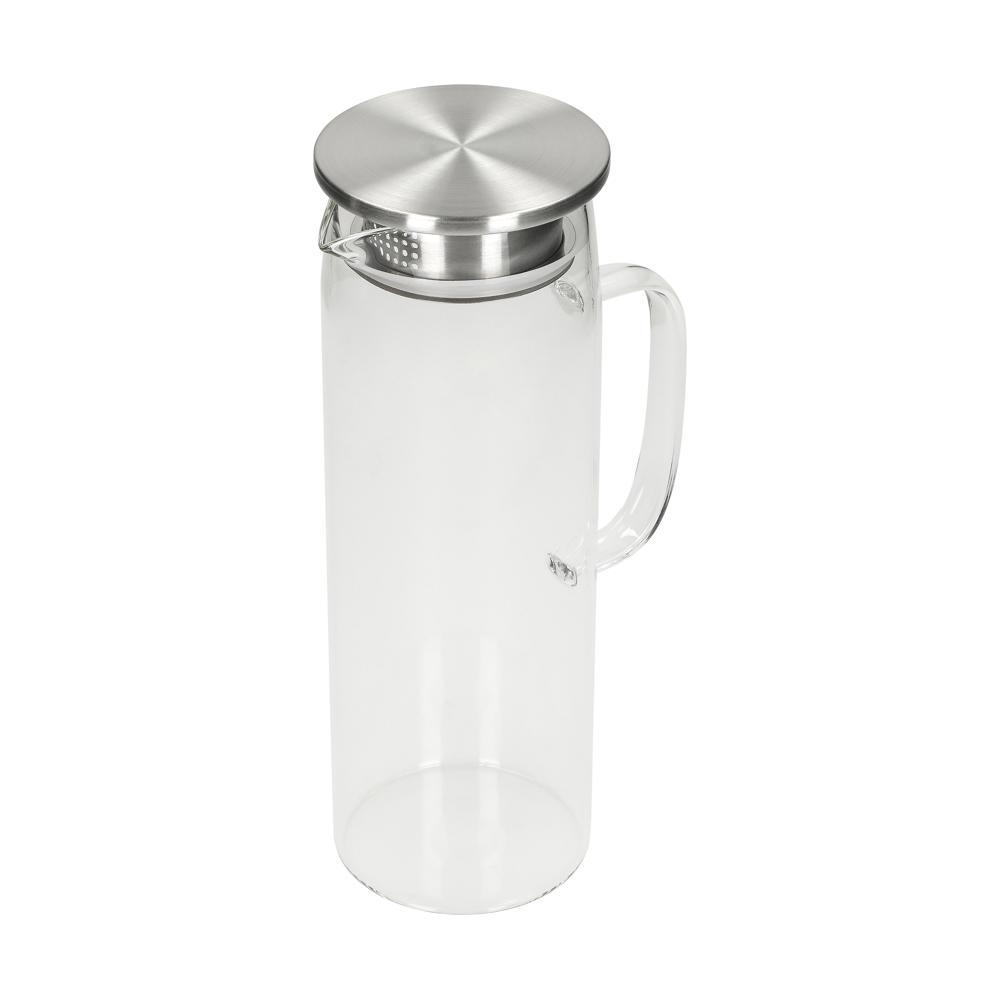 Découvrez cette carafe en verre borosilicaté de 1,5 l, idéale pour personnaliser avec votre logo et offrir en tant que cadeau promotionnel. Équipée d'éléments en acier inoxydable et silicone pour une étanchéité parfaite, elle convient parfaitement à l'eau, aux jus ou au thé glacé.