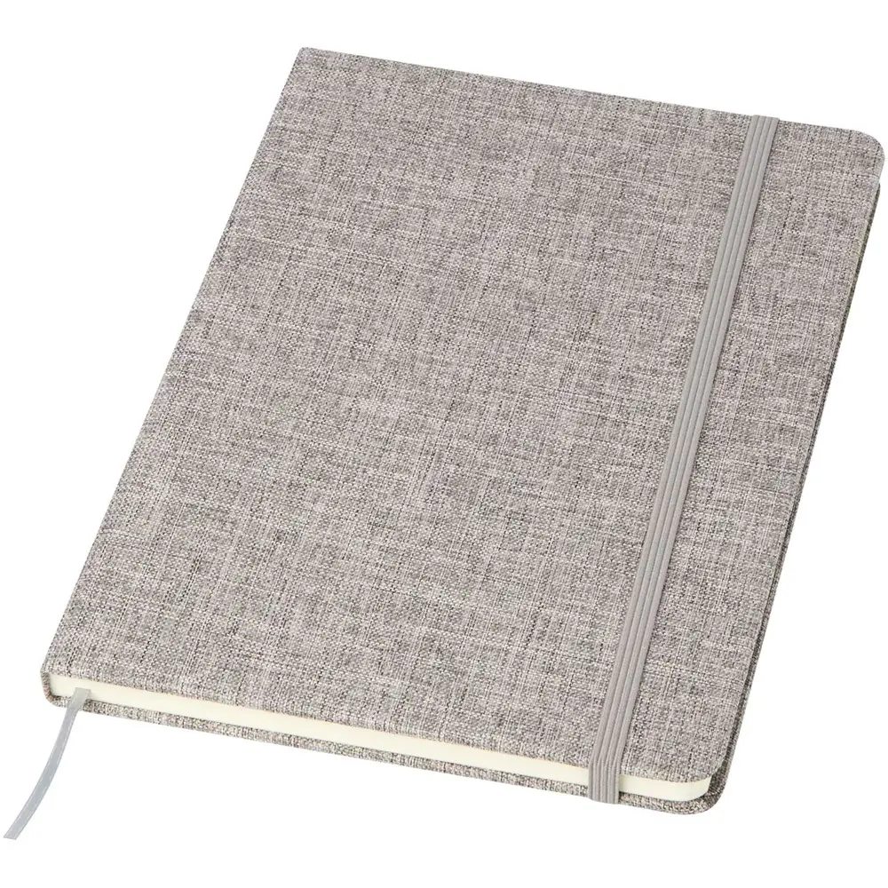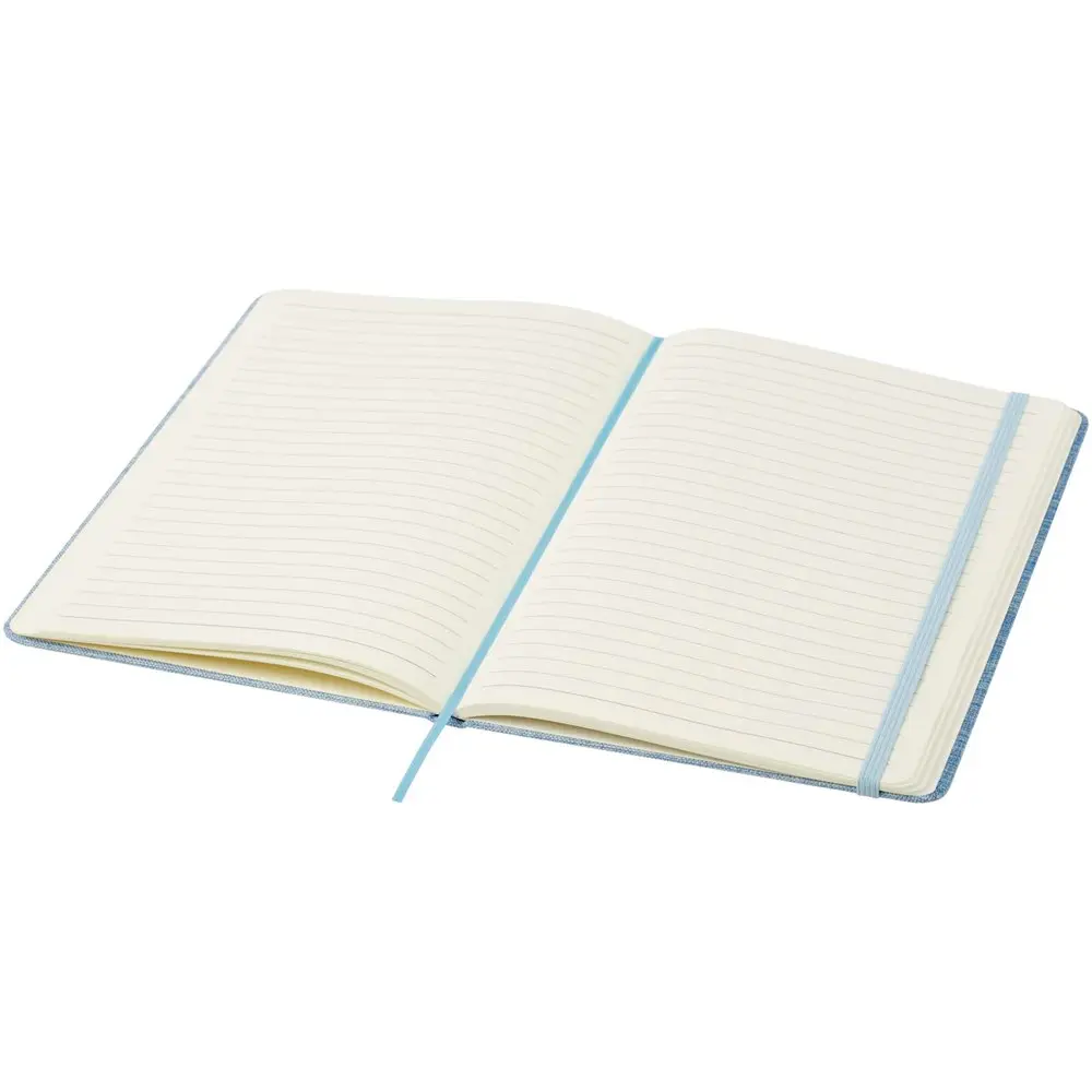 Découvrez notre carnet A5 Ramona à couverture rigide en coton recyclé, idéal pour les professionnels du marketing et les organisateurs d'événements. Avec ses 80 feuilles lignées en papier 70 g/m² certifié FSC, ce carnet durable offre une qualité supérieure et un engagement écologique. Doté d'une fermeture élastique, d'un ruban marque-page et de coins arrondis pour une protection optimale, il mesure 21,1 x 14,5 cm, parfait pour une personnalisation avec votre logo.