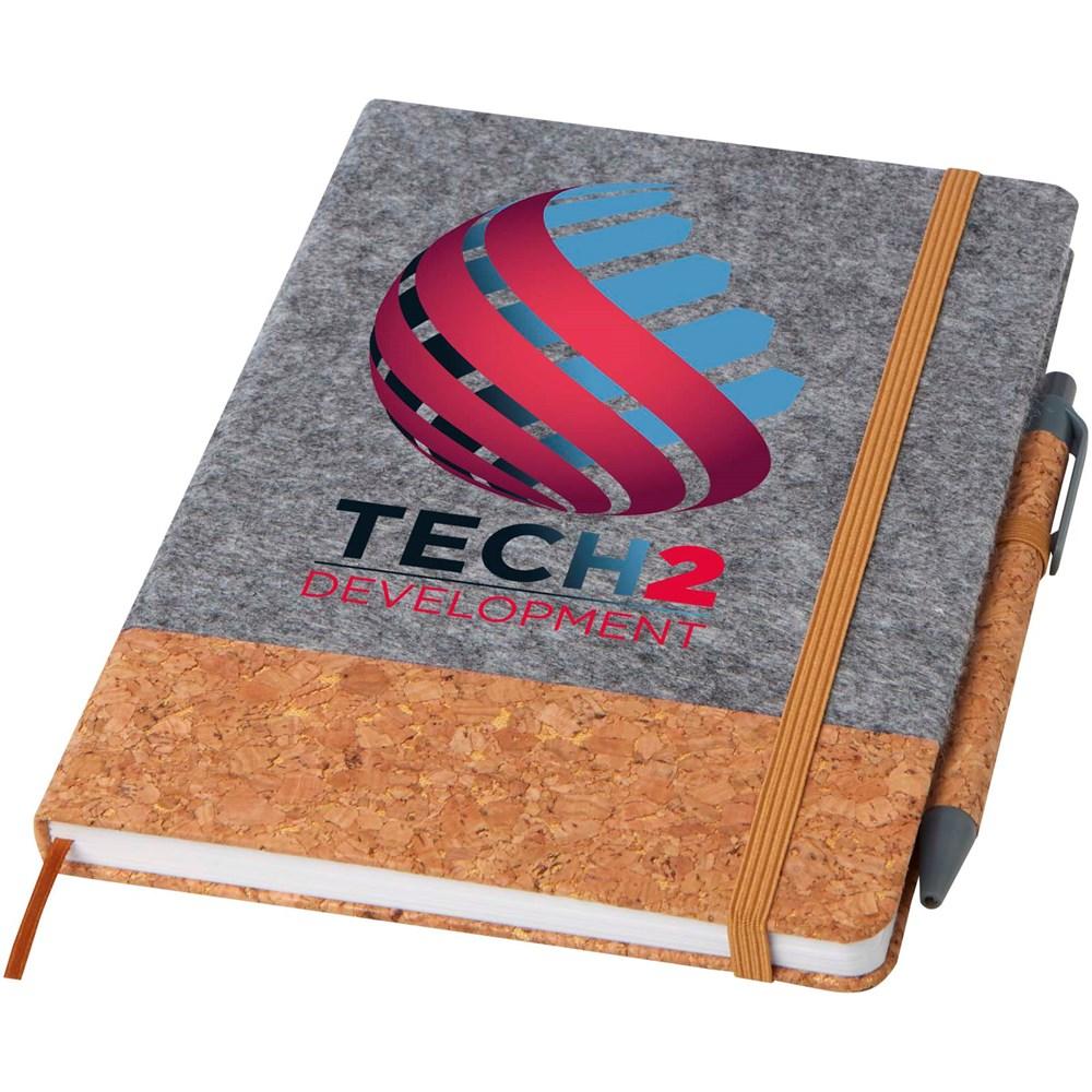 Découvrez ce carnet A5 écologique, idéal pour vos campagnes promotionnelles et événements d'entreprise. Fabriqué en liège naturel et feutrine recyclée, il offre une couverture rigide résistante et un design premium qui met en valeur votre logo personnalisé.
