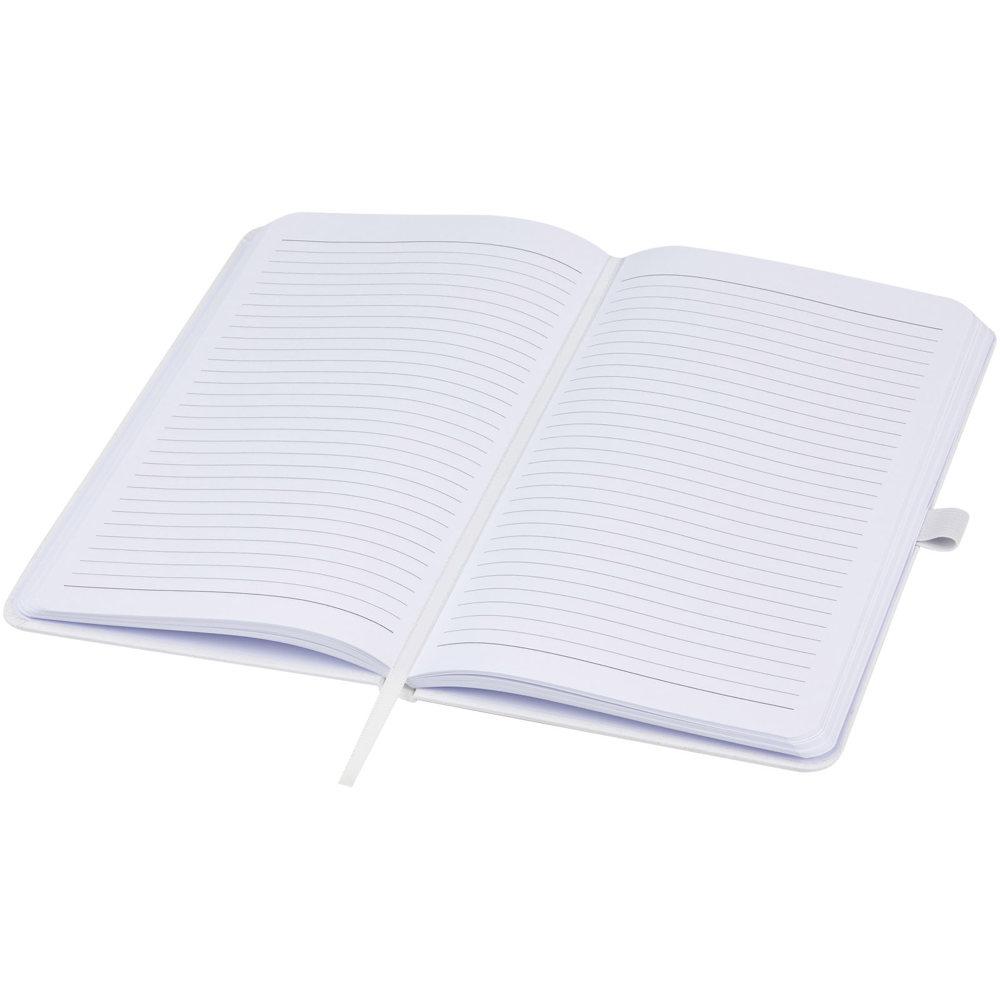 Parfait pour les entreprises et organisateurs d'événements, ce carnet léger se personnalise facilement avec votre logo, devenant un relationnel cadeau premium à distribuer à vos clients. Ses 80 feuilles de papier recyclé blanc ligné (70 g/m²) offrent une qualité d'écriture optimale, tandis que la couverture rigide assure une protection durable. Mettez en avant vos valeurs éco-friendly et renforcez votre image de marque avec ce produit promotionnel attractif et responsable.