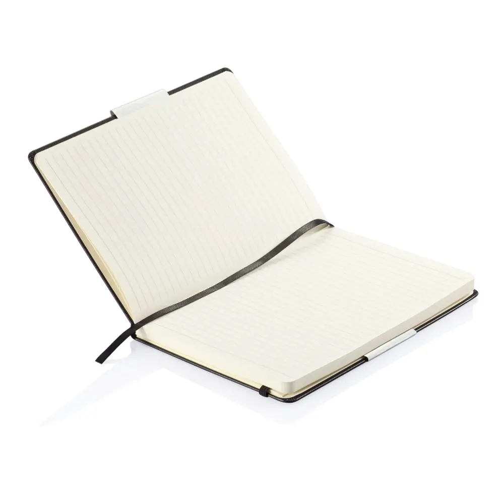 Découvrez notre carnet de notes A5 à couverture rigide, idéal pour les professionnels en quête de supports promotionnels personnalisables. Avec sa bande élastique pratique et ses 80 feuilles (160 pages) de papier de 80 g/m² ligné, ce carnet offre une qualité d'écriture optimale et une organisation facilitée grâce à sa pochette à soufflet et son marque-page intégré.