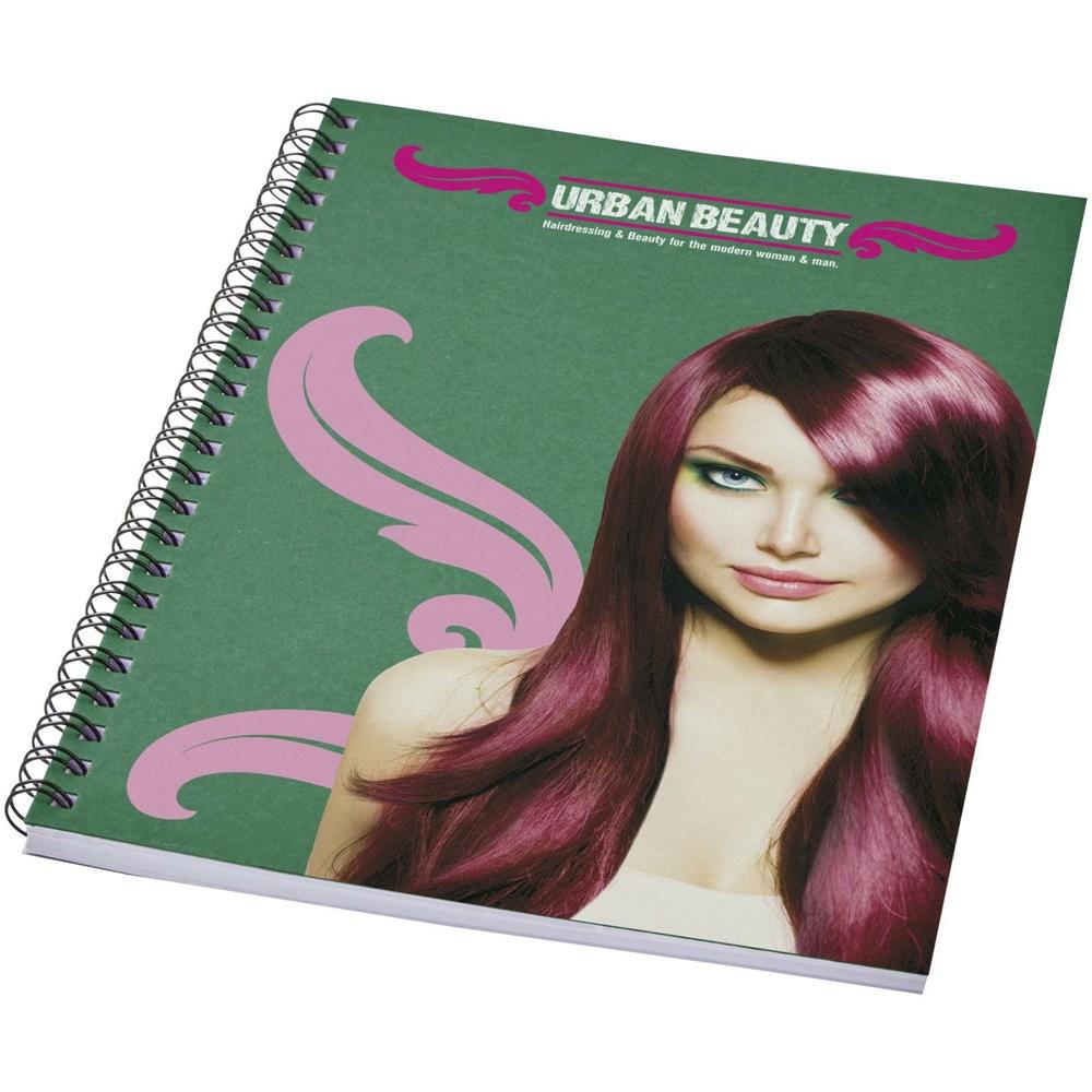 Découvrez ce carnet de notes spirale A5 idéal pour vos campagnes promotionnelles. Avec 50 feuilles de papier recyclé vierge de 80 g/m² et une couverture cartonnée robuste de 320 g/m², il offre une qualité supérieure pour une utilisation quotidienne.