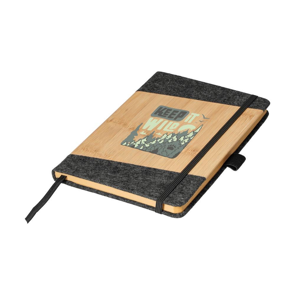 Le carnet de notes "Script" A5 est le compagnon idéal pour vos actions marketing et événements d'entreprise. Sa couverture en feutre et bambou associe élégance et durabilité, avec des dimensions compactes de 21 x 14 cm pour un transport facile. Les pages à carreaux recyclées garantissent une qualité écologique supérieure, tandis que le marque-page, le porte-stylo intégré et le lien de fermeture élastique offrent une fonctionnalité optimale pour noter idées et rendez-vous en toute praticité.