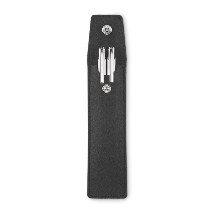 Découvrez notre étui à crayons en feutre RPET, idéal pour les entreprises et organisateurs d'événements. Fabriqué à partir de matériaux recyclés, cet étui à stylo avec fermeture par bouton-pression accueille confortablement 2 stylos (non inclus).