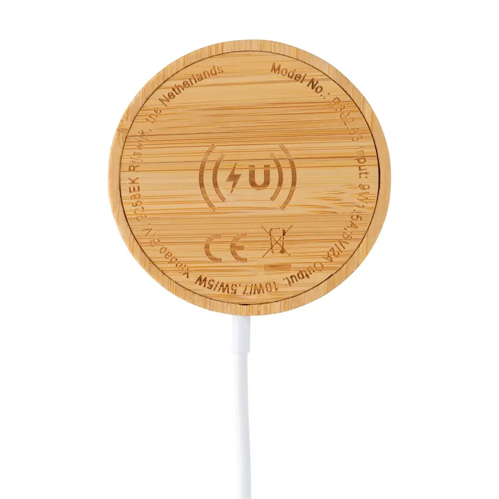 Idéal pour les professionnels du marketing et les organisateurs d'événements, ce chargeur écologique renforce l'image de votre entreprise en offrant un cadeau promotionnel personnalisable avec votre logo. Distribuez-le à vos clients lors d'événements pour promouvoir votre marque de manière durable. Son design en bambou bio, sans PVC et conforme aux normes REACH, ZEK et directives européennes sur les substances dangereuses, souligne votre engagement environnemental, attirant une clientèle soucieuse de la durabilité.