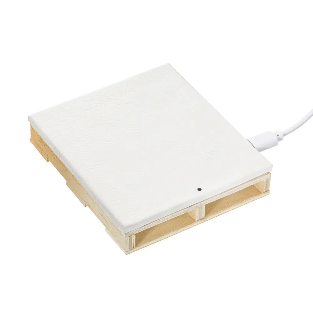 Découvrez ce chargeur sans fil au design minimaliste en bois et plastique, idéal pour égayer les bureaux et événements professionnels. Il combine élégance et fonctionnalité, attirant l'attention tout en facilitant la recharge quotidienne de vos appareils.