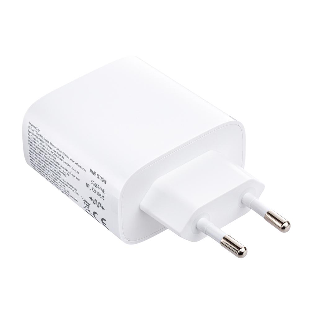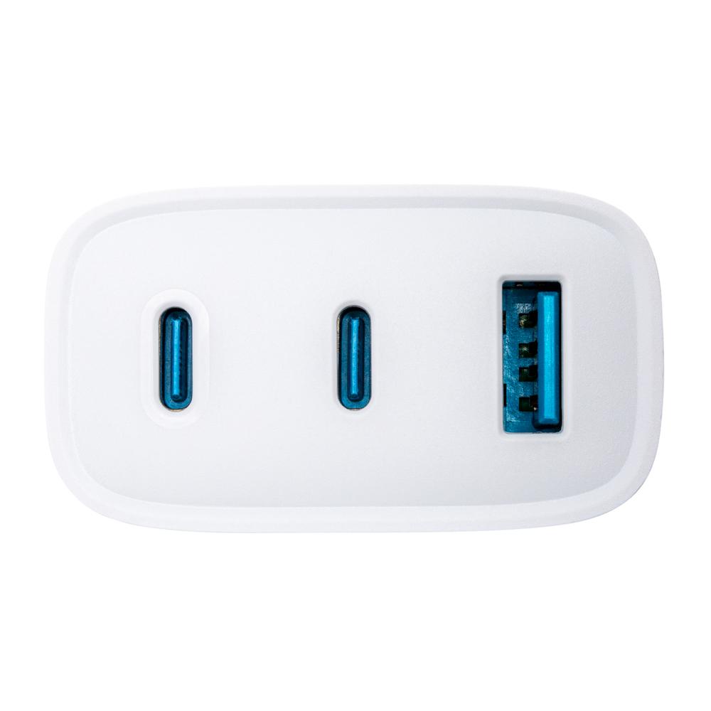 - Charge rapide et polyvalente : 65W de puissance avec 2 ports USB-C (Power Delivery) et 1 USB-A pour alimenter jusqu'à 3 appareils en même temps.