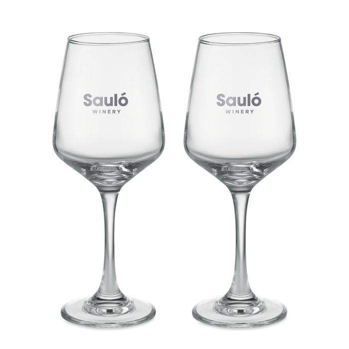Offrez un cadeau d'entreprise élégant et mémorable avec cet ensemble de 2 verres à vin d'une hauteur de 21,8 cm et d'une capacité de 400 ml. Parfaits pour la personnalisation avec votre logo, ces verres subliment vos événements, dîners d'affaires ou offres promotionnelles.