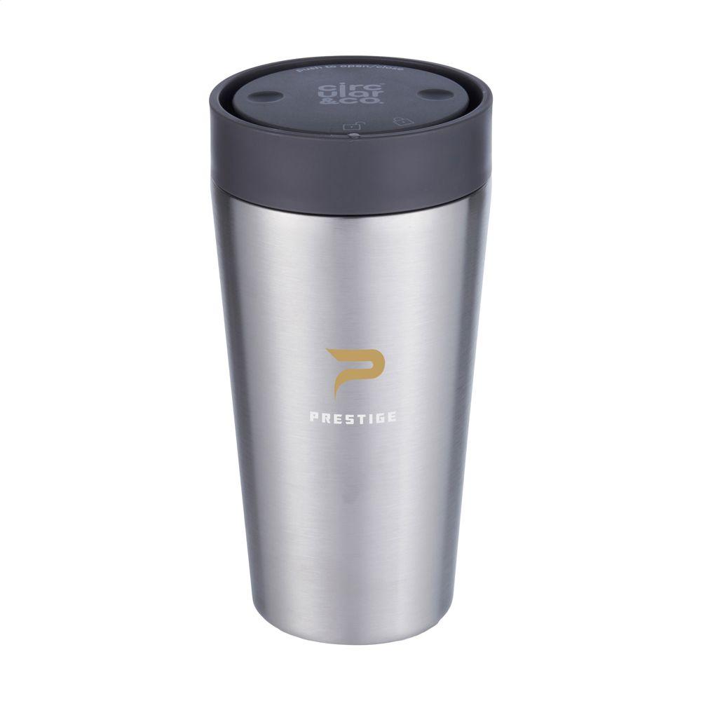 Découvrez la tasse thermos à café à emporter réutilisable Circular&Co, idéale pour vos campagnes marketing et événements d'entreprise. Composée à 98 % d'acier inoxydable recyclé et avec un couvercle en PP 100 % recyclable, elle incarne l'engagement durable de votre marque auprès de vos clients.