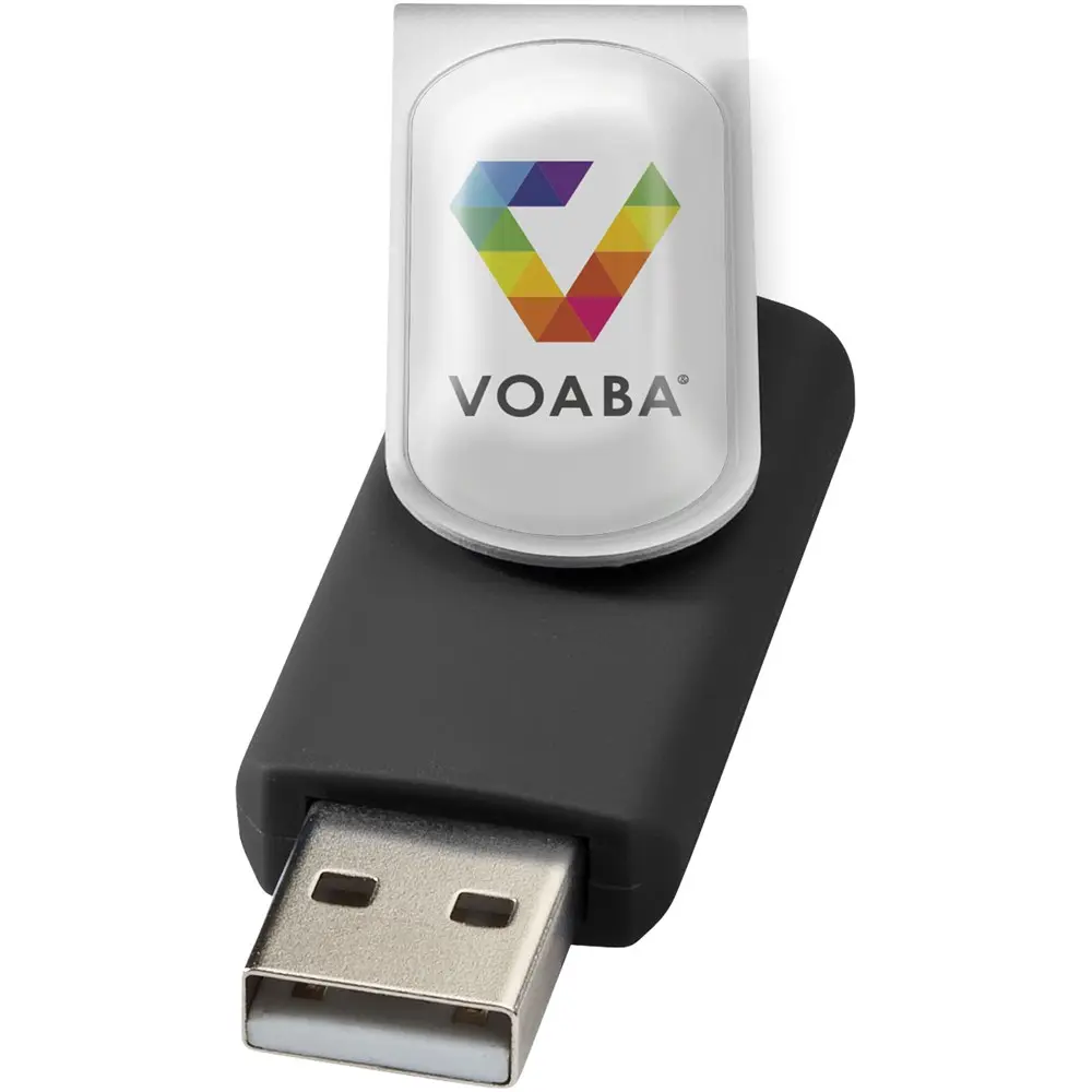 Découvrez cette clé USB rotative, un outil idéal pour stocker et transporter vos documents et photos en toute simplicité. Avec son design classique et son système de rotation fluide, elle offre une accessibilité rapide à vos fichiers essentiels. La technique du doming permet d'apposer votre logo en relief 3D, créant un effet visuel impactant qui renforce votre identité de marque.