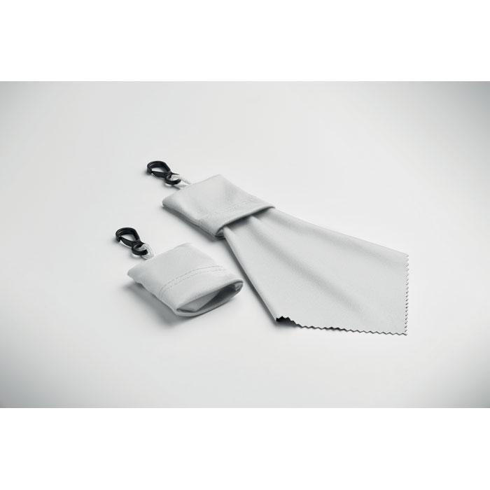 Découvrez notre lingette en RPET, un accessoire écologique et pratique idéal pour vos campagnes marketing et événements. Fabriquée à partir de polyester recyclé (RPET), elle est cousue à une pochette assortie avec un crochet de suspension en plastique PP pour un rangement facile et nomade.