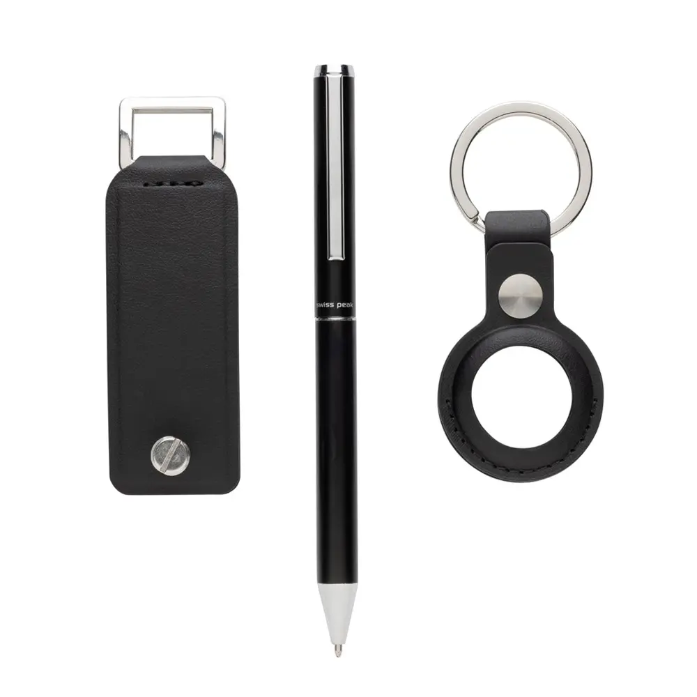 Ce coffret de 3 pièces inclut un organisateur de clés Swiss Peak Tula certifié RCS, un support AirTag sécurisé et un stylo en aluminium recyclé. L'organisateur de clés accueille jusqu'à 4 clés, facilitant l'organisation quotidienne sans encombrement. Le support AirTag permet de localiser facilement vos objets essentiels via votre iPhone, évitant les pertes frustrantes. Le stylo, fluide et résistant, est parfait pour noter idées ou contacts lors de réunions ou salons.