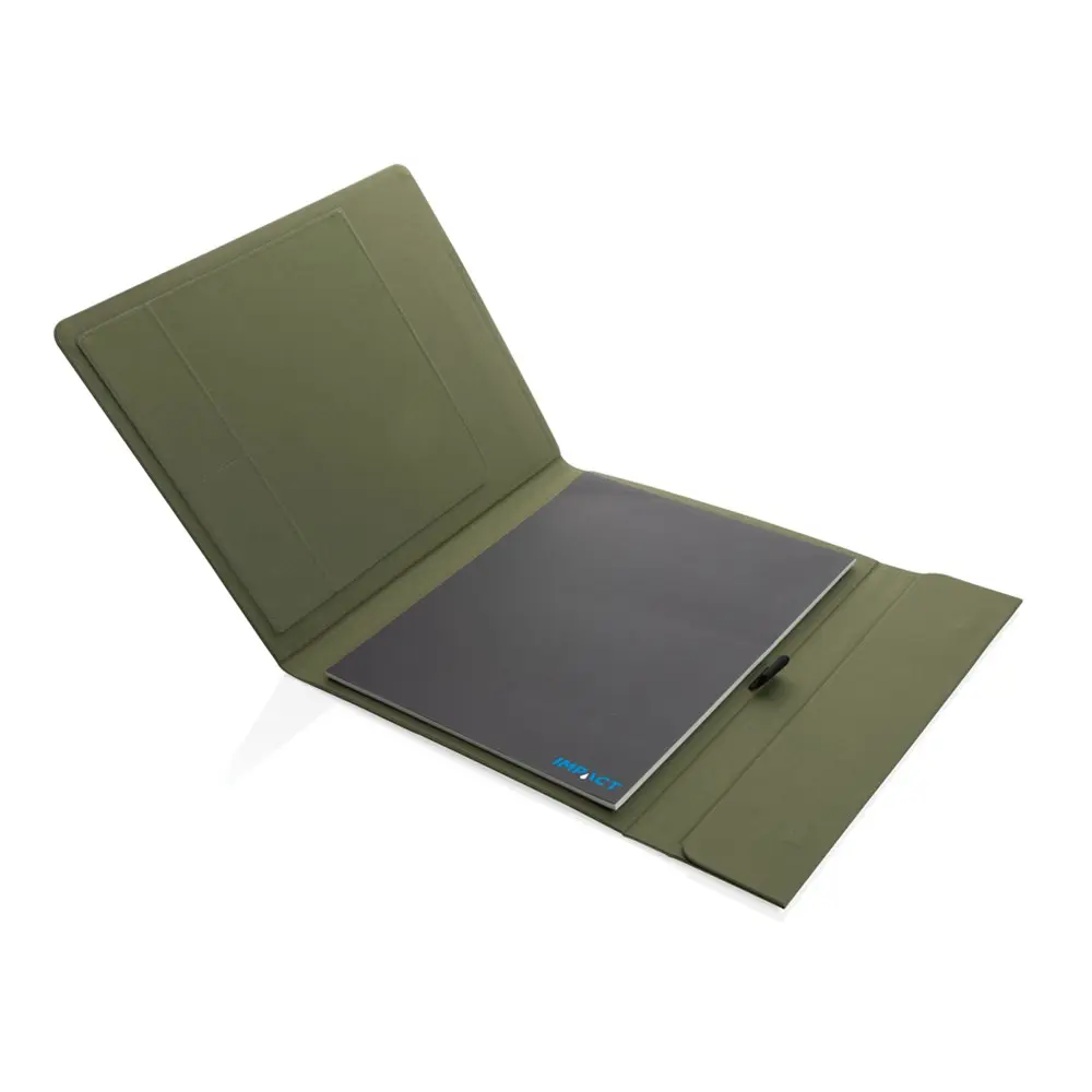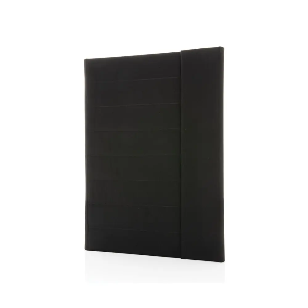 Découvrez notre conférencier A4 Aware™ en rPET recyclé, doté d'une fermeture magnétique pratique pour un accès sécurisé. À l'intérieur, une grande pochette, deux poches supplémentaires et un passant pour stylo facilitent l'organisation lors de vos événements ou réunions. Le bloc-notes contient 20 feuilles lignées de 70 g/m² en papier recyclé FSC, idéal pour des notes professionnelles.