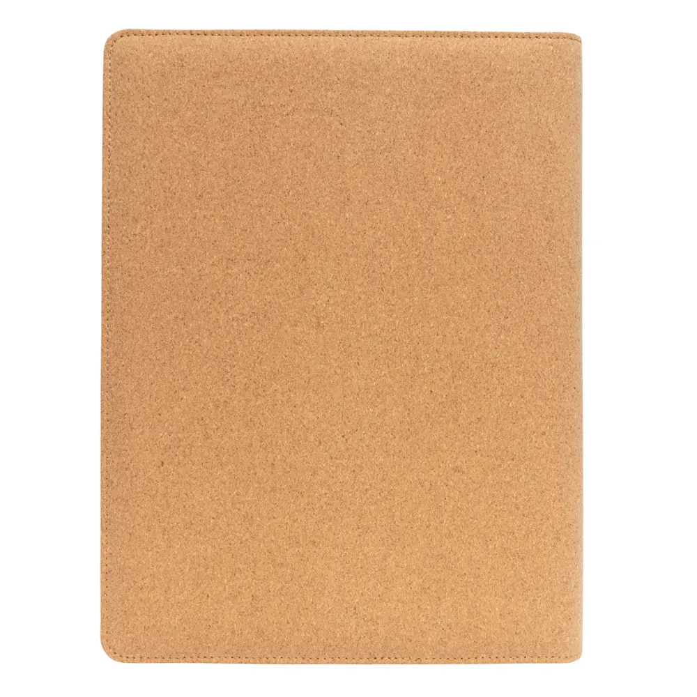 Découvrez ce conférencier A4 conçu en liège durable et polyester, idéal pour les entreprises et les organisateurs d'événements. Intérieur équipé d'un bloc-notes de 20 feuilles de papier recyclé ligné 80 g/m², une grande poche, une poche pour téléphone, deux poches supplémentaires, quatre emplacements pour cartes et un porte-stylo avec stylo assorti en liège et paille de blé. Fermeture par élastique pour une utilisation pratique au quotidien.