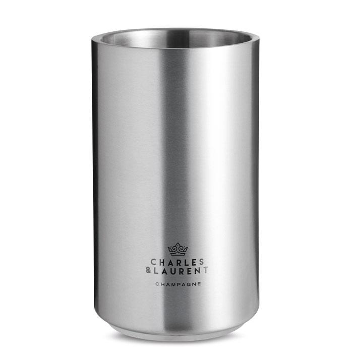 Découvrez ce seau à champagne en acier inoxydable à double paroi et de forme cylindrique, idéal pour conserver vos bouteilles au frais lors d'événements professionnels ou de réceptions d'entreprise.