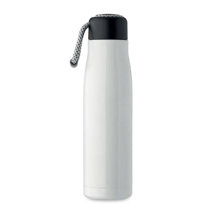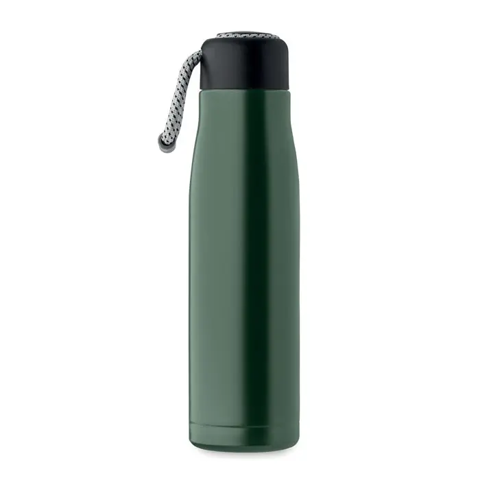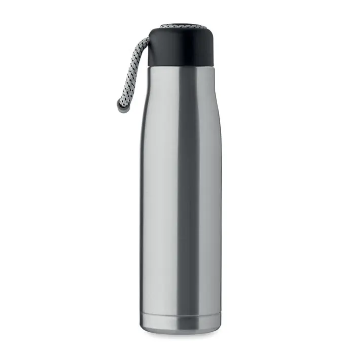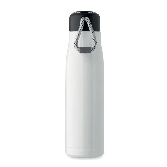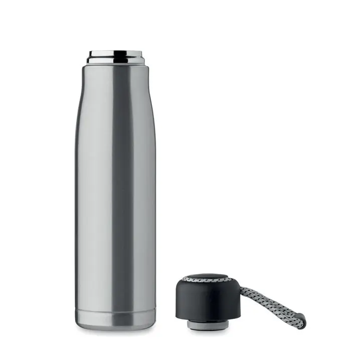 Découvrez la CORDLE, une bouteille double paroi de 500 ml en acier inoxydable recyclé (90 % recyclé), idéale pour vos campagnes marketing et événements. Avec son poignées en corde intégrée au bouchon en PP et son système anti-fuite, elle assure une utilisation pratique et sans souci. Maintenez vos boissons chaudes ou froides plus longtemps grâce à l'isolation double paroi, tout en promouvant la durabilité avec ce matériau éco-responsable. Personnalisez-la avec votre logo pour un cadeau promotionnel mémorable qui renforce votre marque auprès de vos clients. Parfaite pour les entreprises soucieuses de l'environnement et de l'impact marketing.