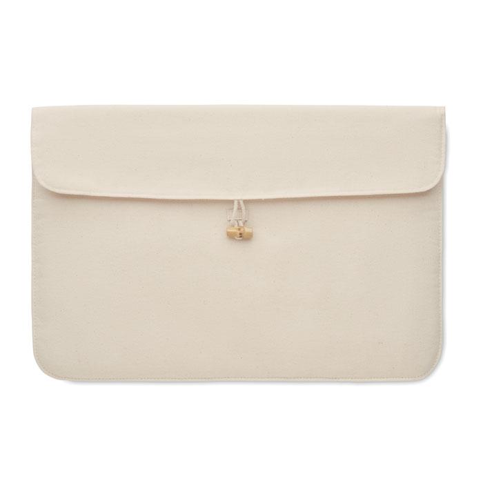 Découvrez cette pochette matelassée élégante et protectrice pour ordinateur portable 15 pouces, fabriquée en coton robuste de 220 gr/m² avec doublure intérieure douce de 120 gr/m². La fermeture par bouton en bambou ajoute une touche écologique et sophistiquée.