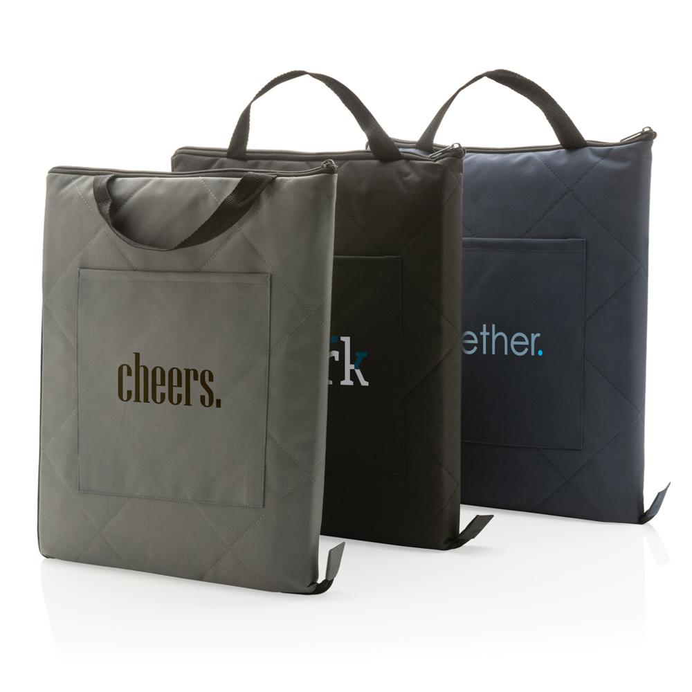 Découvrez notre couverture pique-nique pliable matelassée, idéale pour les événements d'entreprise et les cadeaux promotionnels personnalisés. Fabriquée à 100% en PET recyclé, elle offre une grande poche avant parfaite pour imprimer votre logo et renforcer votre visibilité marketing.