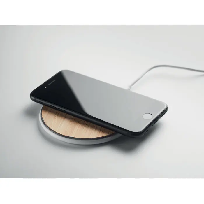 Découvrez ce chargeur sans fil élégant, idéal pour personnaliser avec votre logo et offrir comme cadeau relationnel à vos clients. Fabriqué avec un dessus en bambou naturel et une base en ABS robuste, il combine durabilité et aspect écologique pour booster votre image de marque responsable.