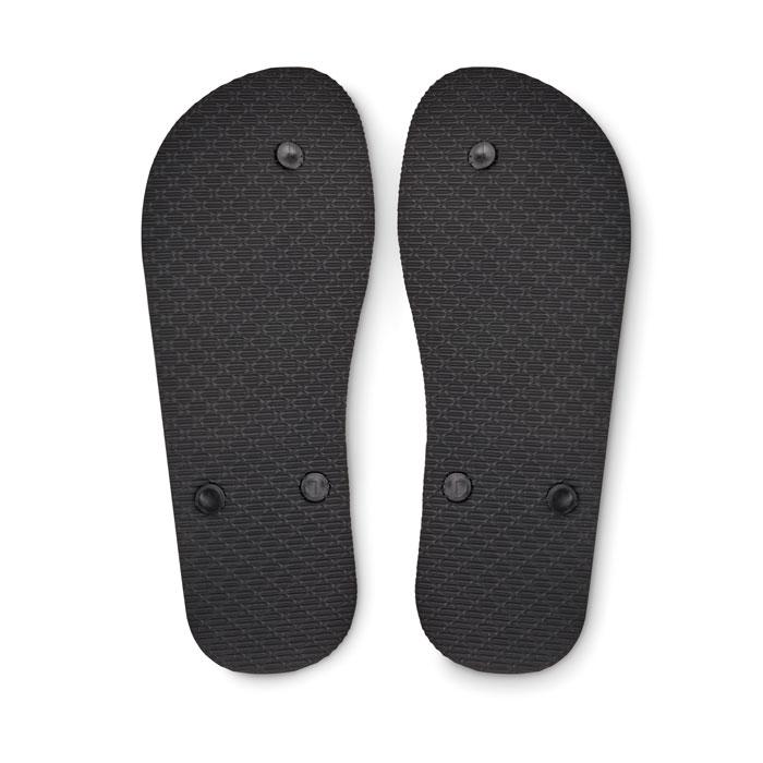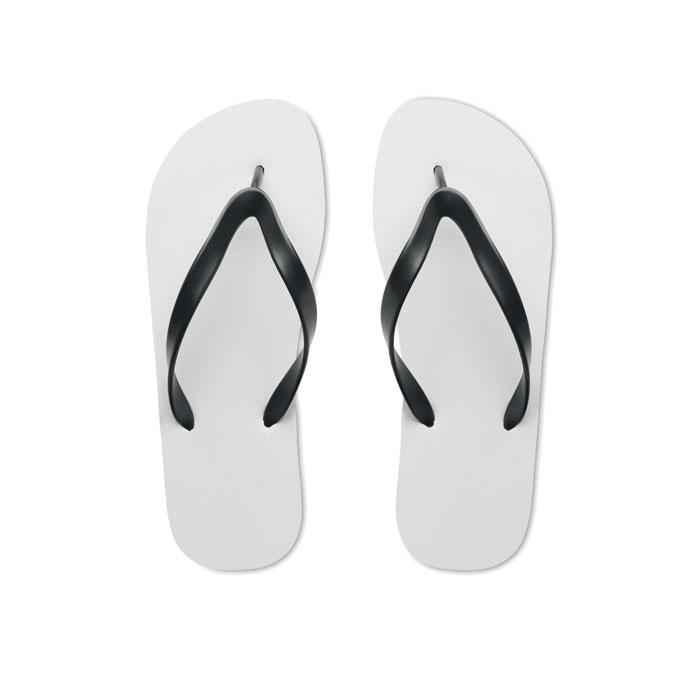Tongs pour sublimation DO MEL : l'article promotionnel parfait pour vos événements d'été et campagnes marketing. Ces tongs sont conçues avec des sangles en PVC robustes, une semelle en caoutchouc antidérapante pour un confort optimal et un dessus en tissu polyester idéal pour une impression sublimation haute définition. Taille 42-44, elles s'adaptent parfaitement à une personnalisation complète avec votre logo ou visuel corporate.