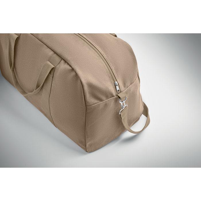 Découvrez notre sac de voyage 450 gr/m² DUFFAS, fabriqué en tissu recyclé résistant (60% coton recyclé et 40% polyester recyclé). Doté d'une sangle en coton réglable et détachable, il offre un confort optimal pour transporter vos affaires en toute praticité.
