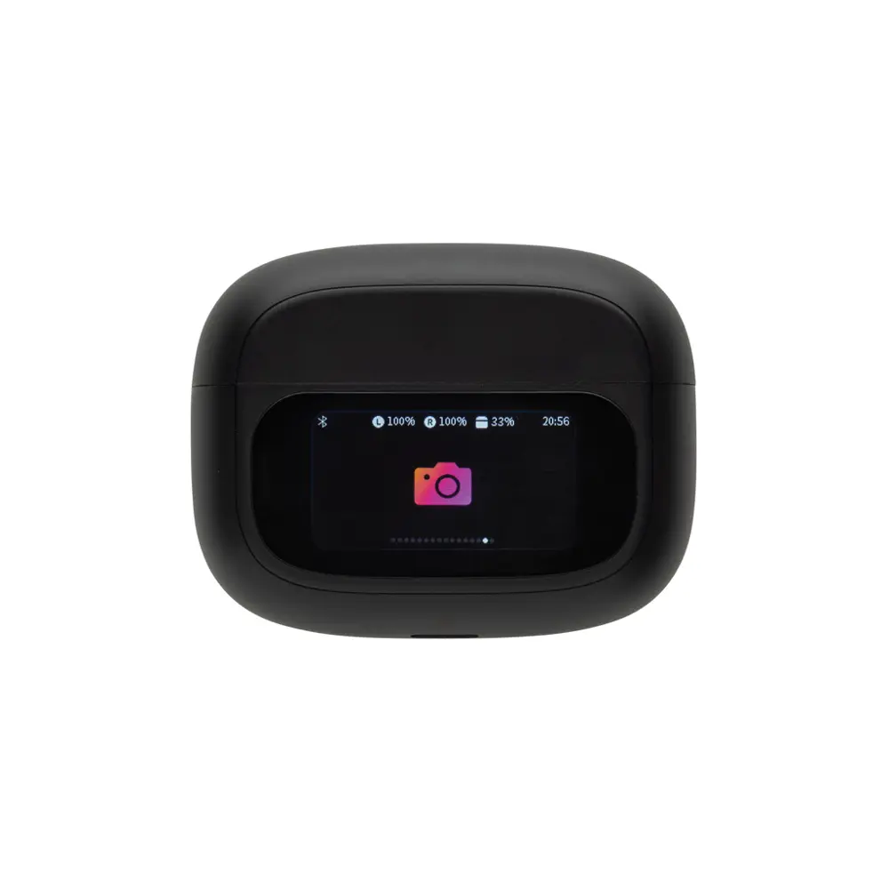 Fabriqués en ABS recyclé certifié RCS (43 % de contenu recyclé), ils respectent les normes environnementales strictes et attirent les professionnels soucieux de durabilité. La technologie Bluetooth 5.3 assure un appairage fluide et une connexion stable. L'étui de chargement intègre un écran tactile TFT intuitif pour contrôler le volume, changer de piste, localiser les écouteurs ou répondre aux appels via le micro ENC clair.