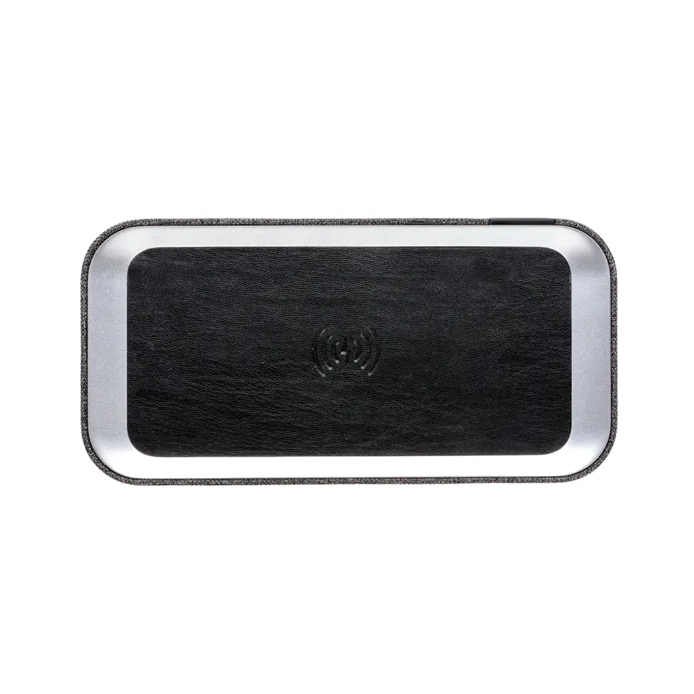 La batterie Li-ion de 4000 mAh offre jusqu'à 10 heures d'autonomie en audio ou deux charges complètes de téléphone. Pour une utilisation hybride, branchez-la via micro USB. Fabriquée en ABS et polyester, elle assure une finition tissu élégante pour bureau, maison ou voyages d'affaires.