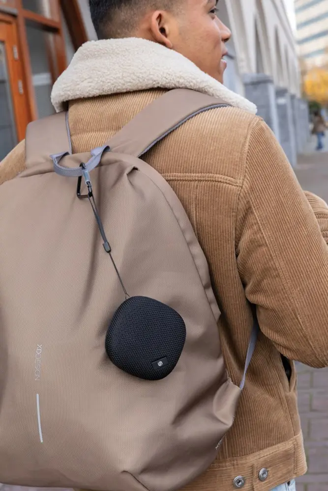 Offrez à vos clients un cadeau relationnel durable et écologique, fabriqué sans PVC et emballé dans une boîte cadeau à faible teneur en plastique. La sangle intégrée permet d'accrocher l'enceinte au sac à dos ou de l'utiliser comme support stable, facilitant son transport lors d'événements ou de voyages d'affaires. Le microphone incorporé et la fonction mains-libres pour répondre aux appels en font un accessoire polyvalent, combinant divertissement et connectivité. Personnalisez-la avec votre logo pour renforcer votre marque et créer un impact mémorable auprès de vos partenaires et prospects. Conforme à de multiples normes européennes de sécurité et d'environnement, elle renforce l'image responsable de votre entreprise.