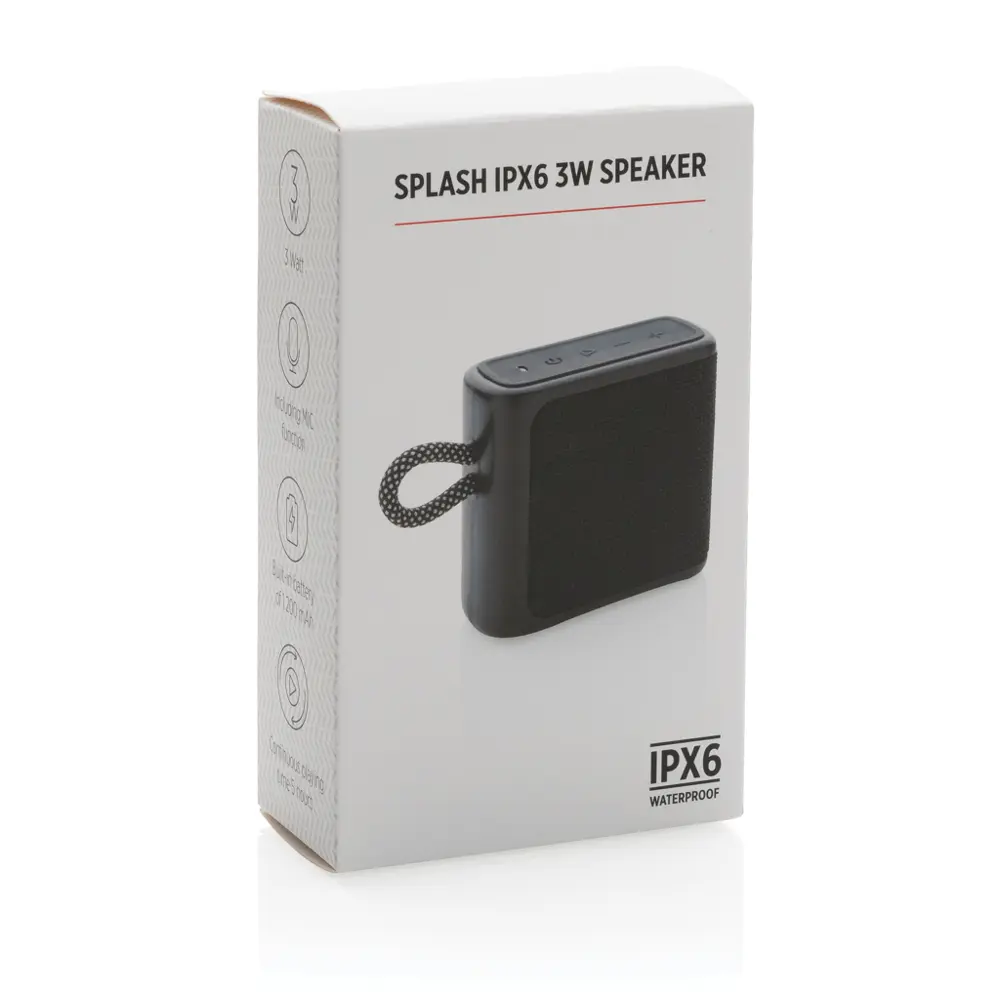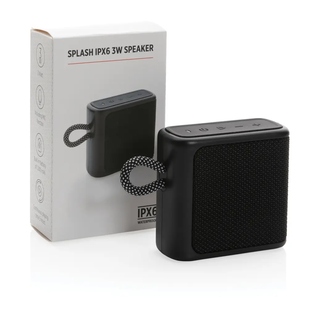 Découvrez notre enceinte Bluetooth waterproof IPX6 3W Splash, idéale pour personnaliser avec votre logo et booster votre visibilité lors d'événements ou campagnes marketing. Fabriquée en ABS robuste, elle résiste aux éclaboussures, parfaite pour des usages en extérieur.