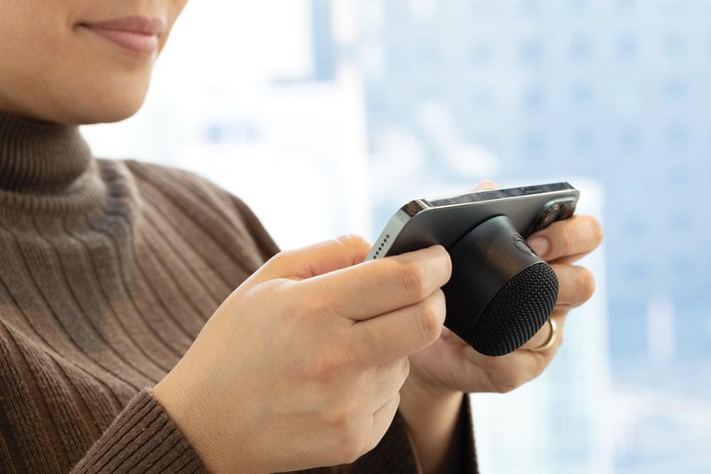 Découvrez cette enceinte bluetooth compacte et innovante, parfaite pour vos campagnes promotionnelles et événements d'entreprise. Fixez-la facilement à l'arrière de tout smartphone compatible magnétique pour un support stable tout en diffusant votre musique préférée. Elle s'adapte aussi à d'autres surfaces ferromagnétiques comme un réfrigérateur, pour une utilisation polyvalente au quotidien.