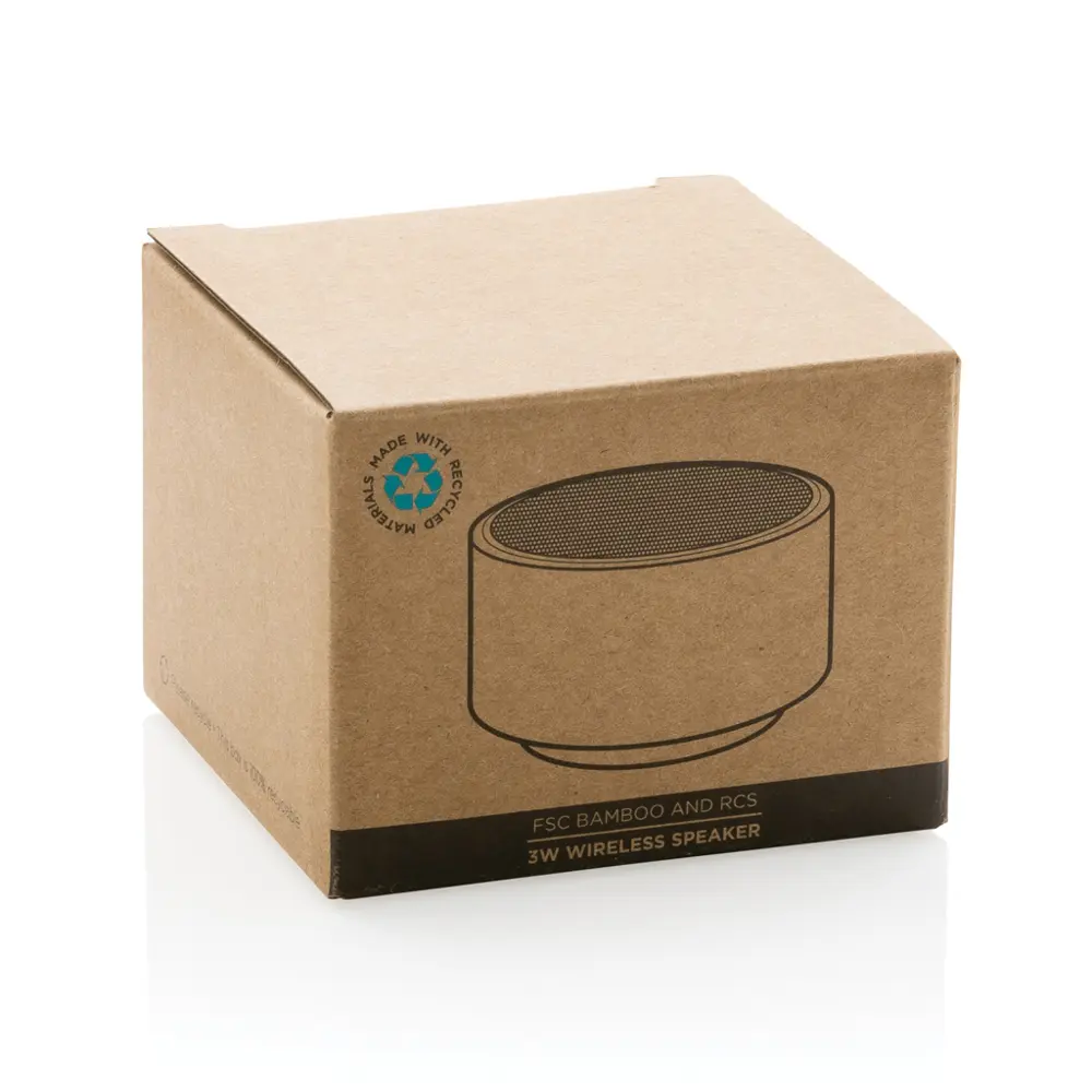 Découvrez ce haut-parleur sans fil compact et écologique, idéal pour vos campagnes promotionnelles. Fabriqué avec un boîtier en 100% bambou FSC® et de l'ABS recyclé certifié RCS, il intègre 16% de contenu recyclé basé sur le poids total. La certification RCS assure une traçabilité complète des matériaux recyclés, renforçant votre engagement en faveur de l'environnement.