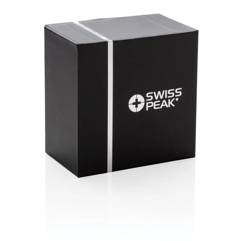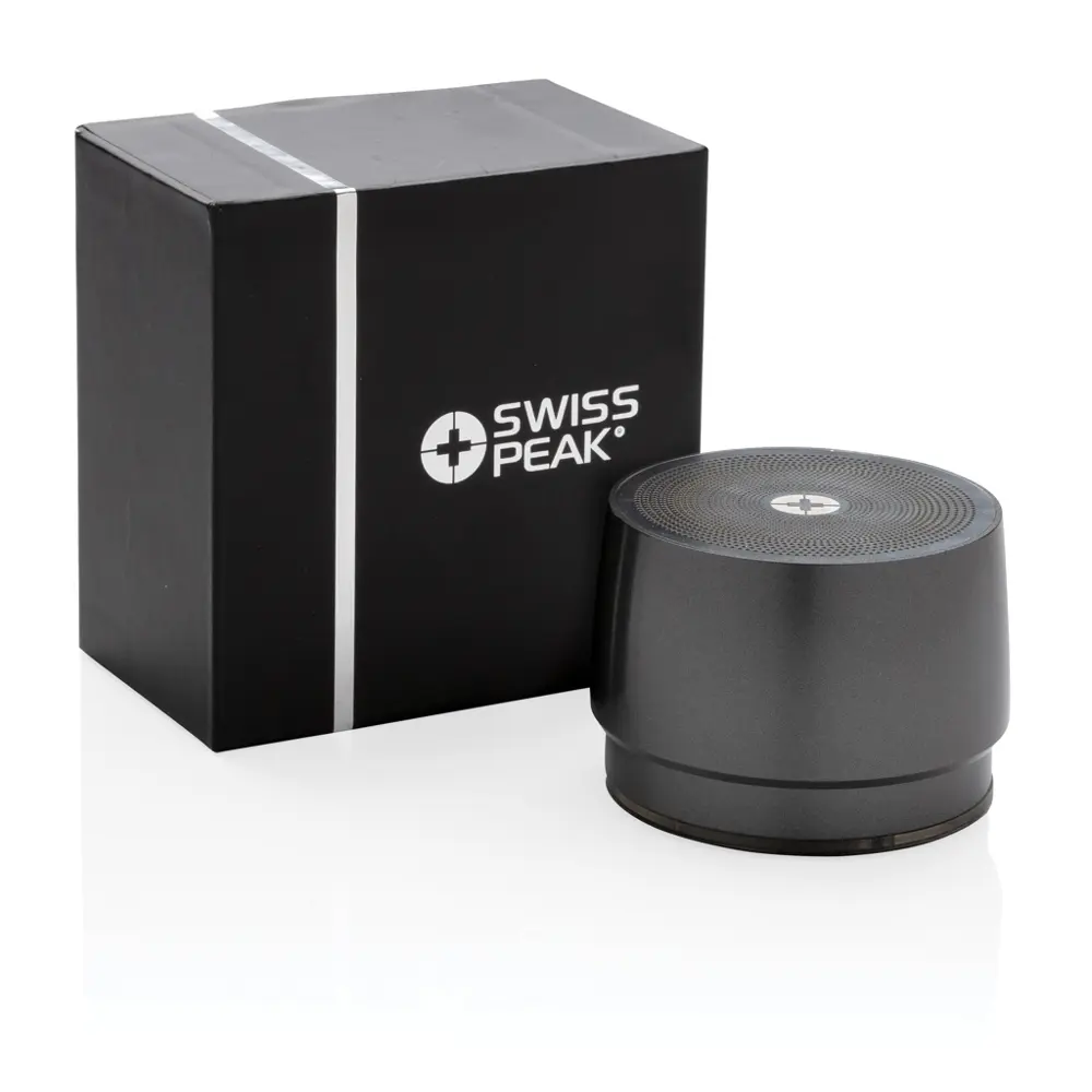 Découvrez l'enceinte Bluetooth 5W Swiss Peak, un haut-parleur compact en acier inoxydable, idéal pour les cadeaux promotionnels personnalisés. Avec son subwoofer intégré à la base, elle offre des basses puissantes pour une expérience audio immersive. La batterie Li-poly de 650 mAh assure jusqu'à 5 heures d'écoute continue de votre musique préférée.