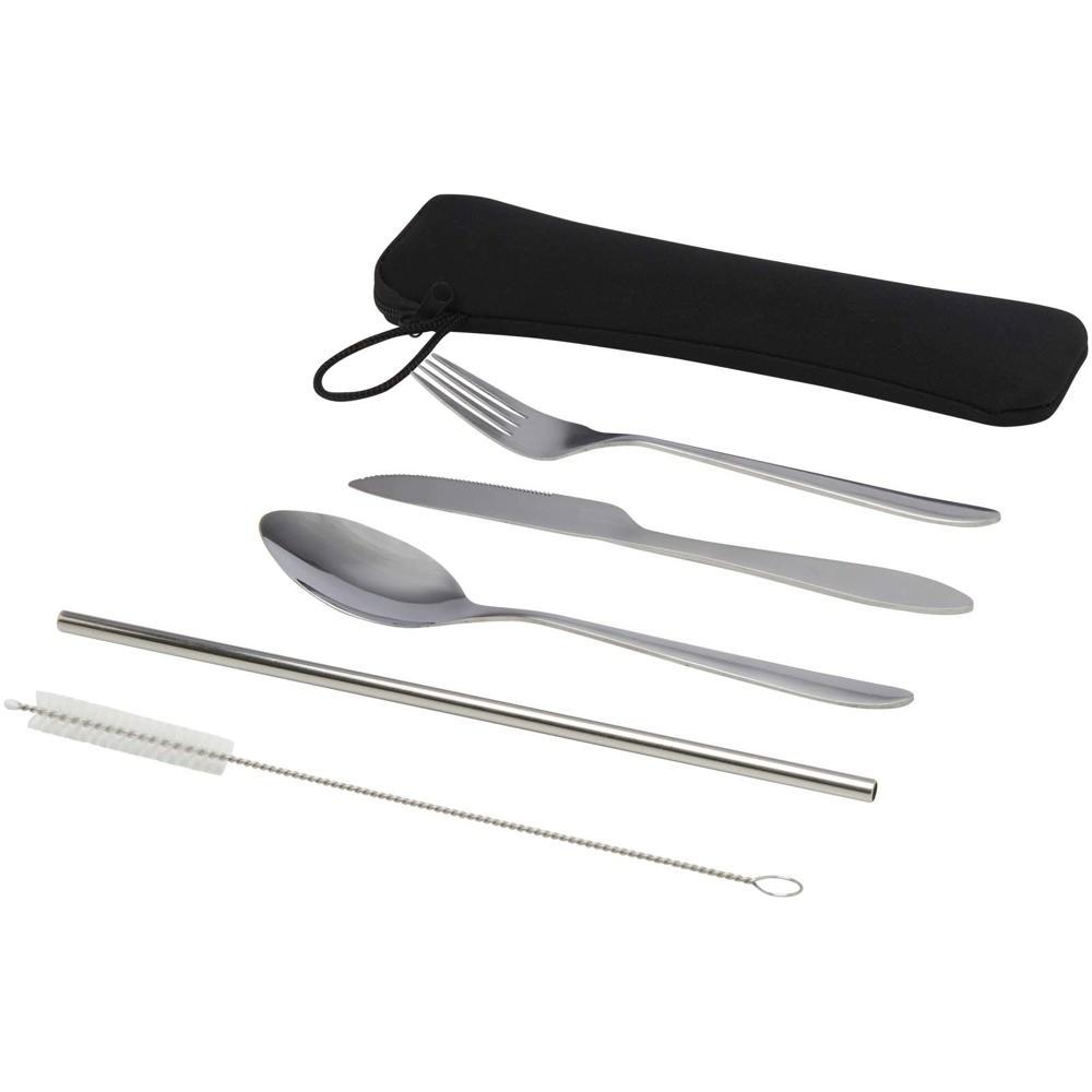 Découvrez cet ensemble de couverts complet et pratique, idéal pour vos actions marketing et événements. Composé d'une fourchette, d'un couteau, d'une cuillère, d'une paille réutilisable et d'une brosse de nettoyage, il est fabriqué en acier inoxydable de haute qualité, résistant, durable et facile à entretenir.