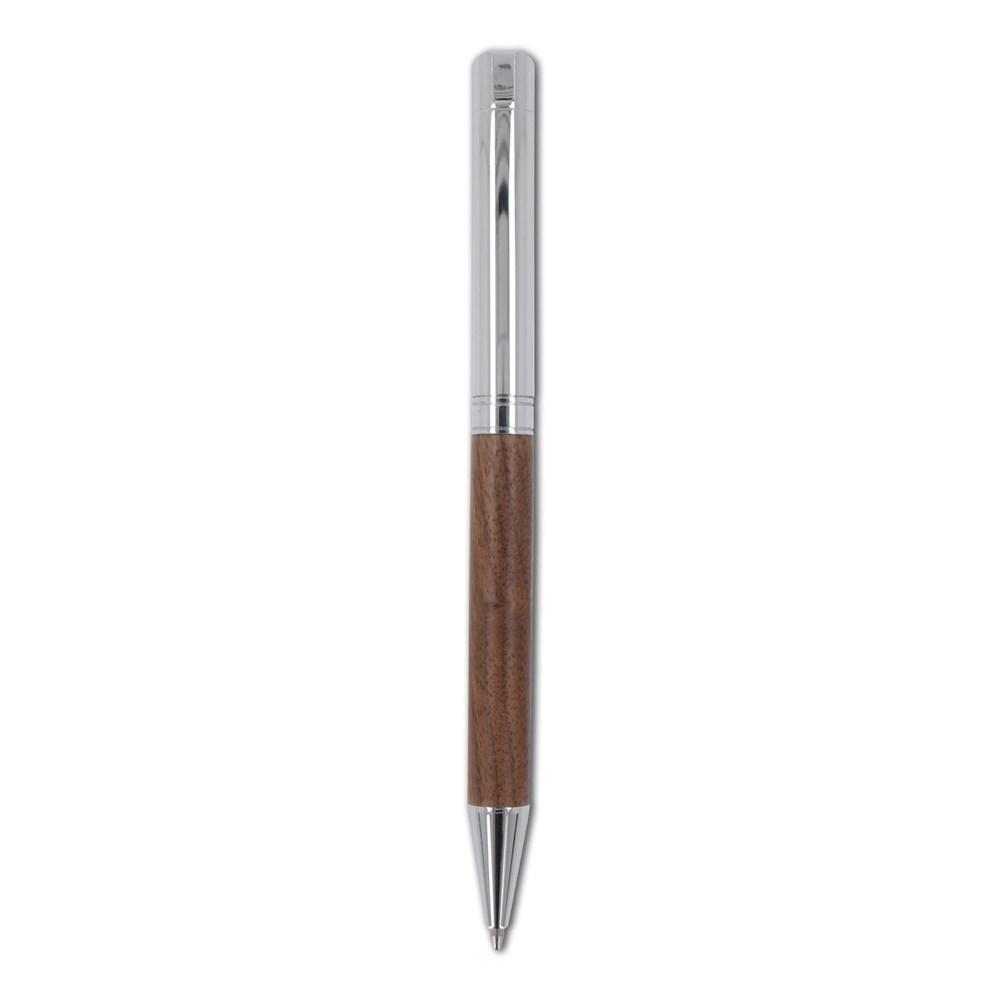 Découvrez ce set d'écriture raffiné, composé d'un stylo à bille et d'un stylo roller en métal et bois de noyer. Présenté dans une boîte cadeau sophistiquée, il offre un aspect classique et intemporel, parfait pour impressionner vos clients.