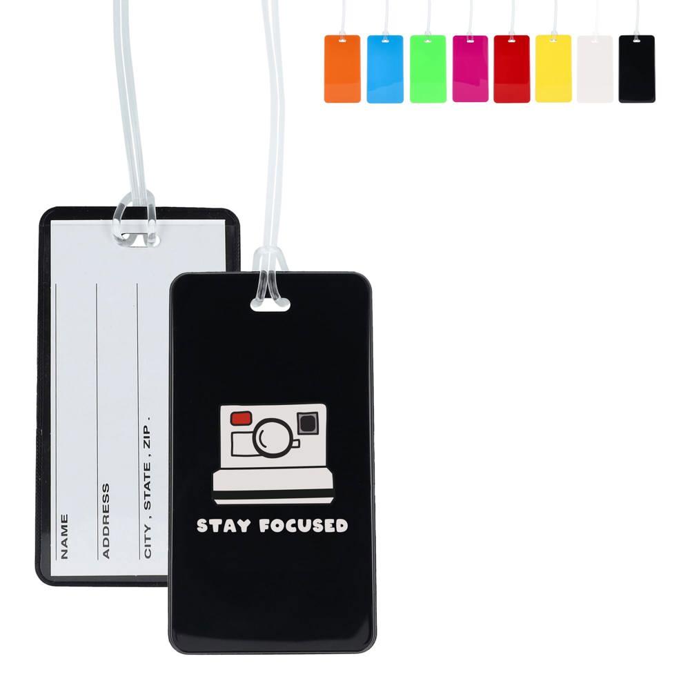 Découvrez notre étiquette bagage en PVC robuste, parfaite pour vos actions marketing et événements d'entreprise. Personnalisable avec votre logo, elle intègre une carte amovible où inscrire facilement les coordonnées du voyageur, garantissant une identification rapide et sécurisée des bagages.