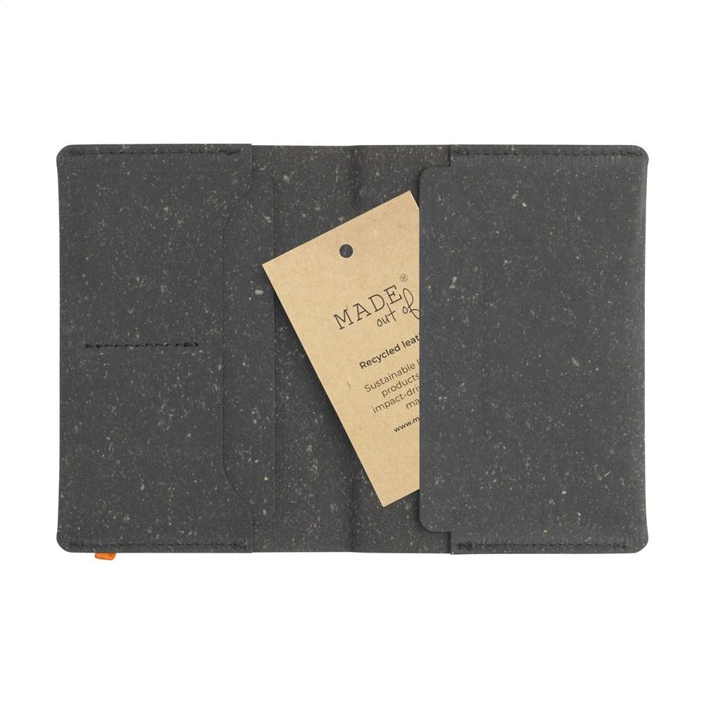 Offrez à vos clients un protège-passeport durable et élégant, fabriqué à partir de déchets de cuir recyclés italiens et de liants naturels. Ce produit de la marque MADE out of allie qualité premium et engagement écologique, idéal pour vos campagnes marketing ou événements professionnels.