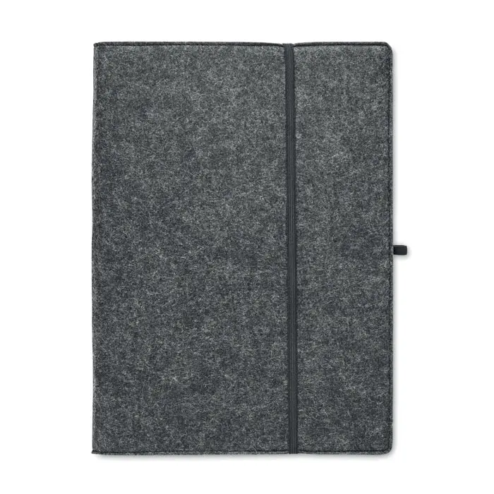 Découvrez notre conférencier A4 conçu en feutre RPET et papier recyclé, idéal pour les entreprises soucieuses de l'environnement. Ce bloc-notes de 100 feuilles lignées offre une surface d'écriture pratique et éco-responsable, complétée par un porte-stylo élastique pour une organisation optimale.