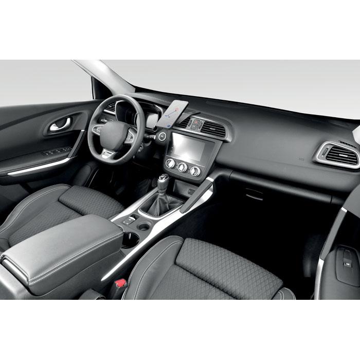 Sa fixation auto-agrippante assure une stabilité optimale sur le tableau de bord ou le pare-brise, tandis que la technologie magnétique garantit un alignement précis pour une charge efficace. Compatible avec iPhone® 12 et modèles ultérieurs, il inclut un anneau métallique supplémentaire pour adapter d'autres téléphones compatibles Qi.