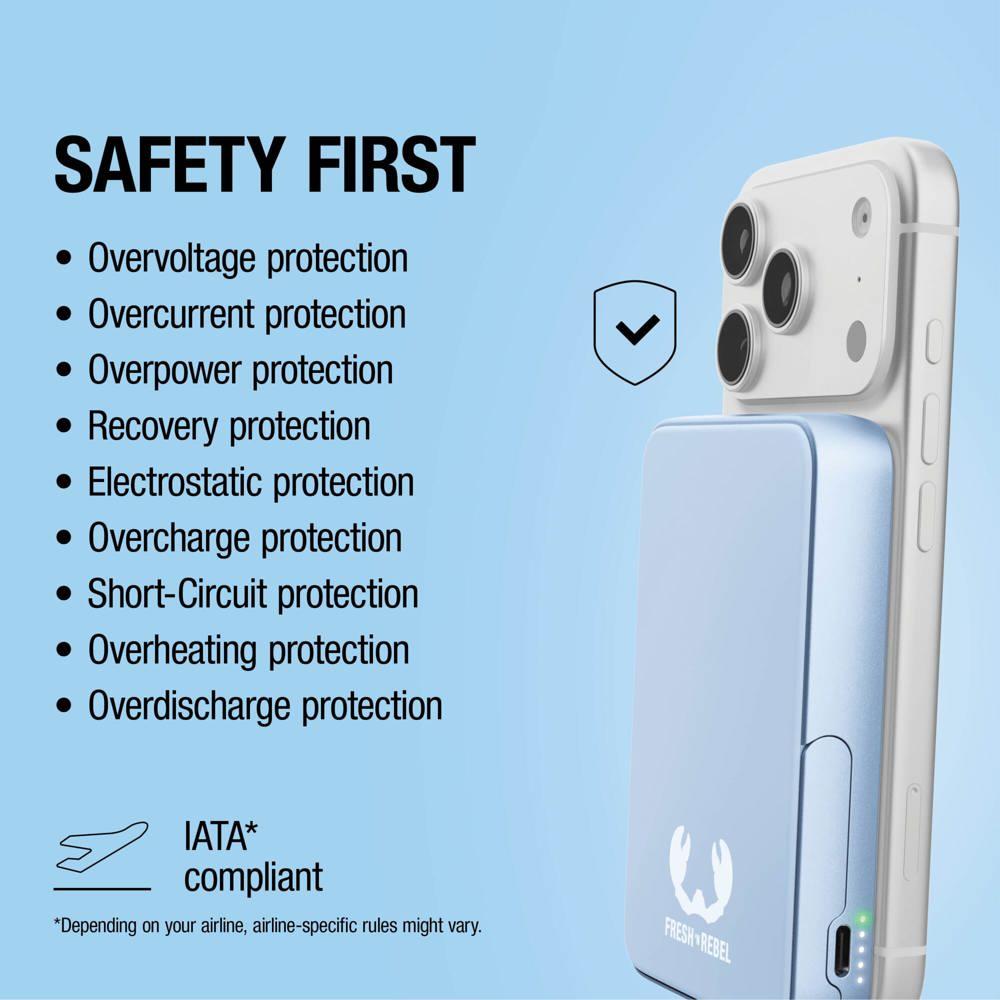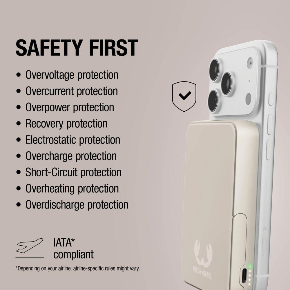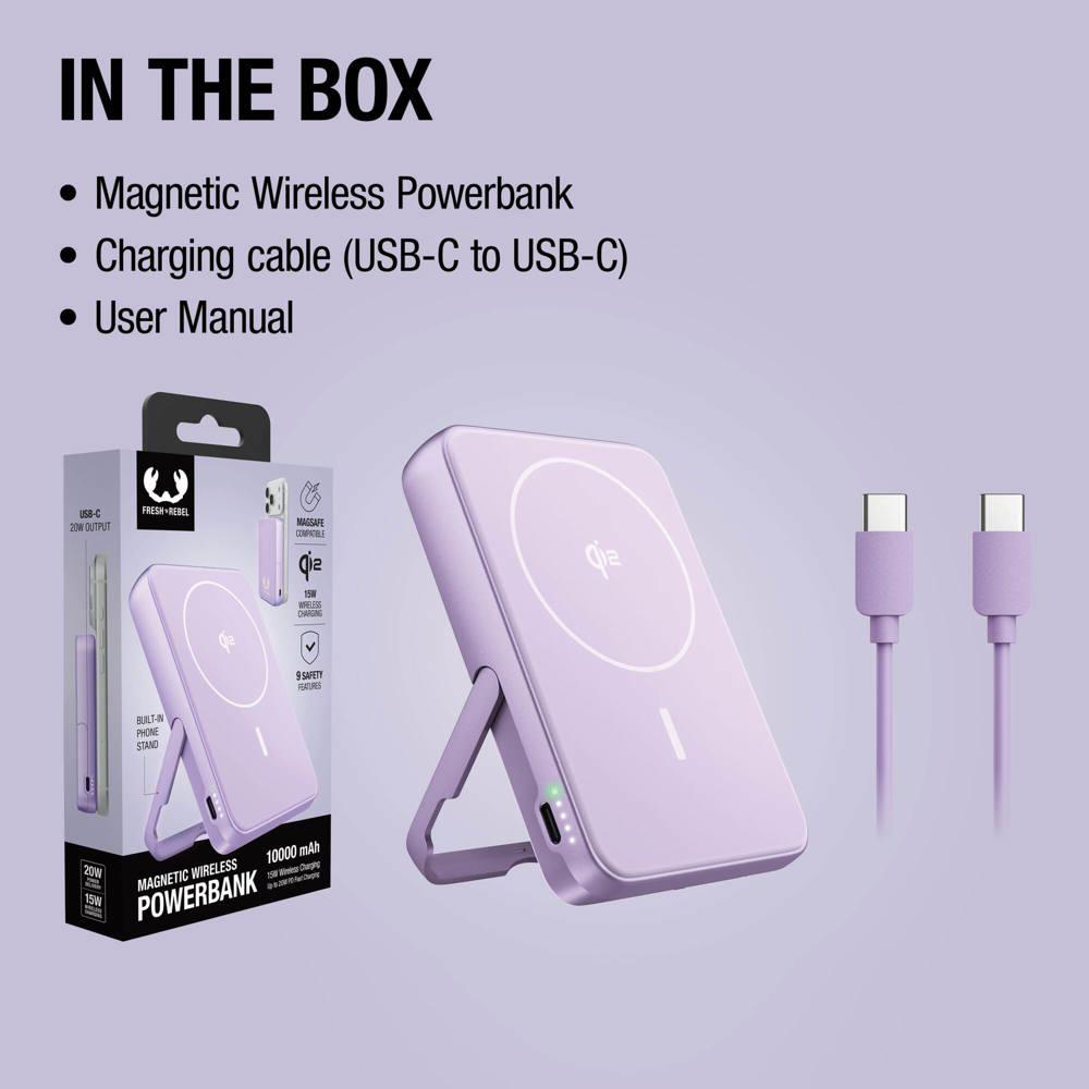 Fresh ’n Rebel Batterie externe sans fil 10000 mAh compatible MagSafe : rechargez vos appareils partout avec cette powerbank magnétique ultra-pratique. Fixez-la facilement sur votre smartphone grâce à la technologie MagSafe et bénéficiez d’une charge sans fil rapide jusqu’à Qi2 15W, ou optez pour une charge ultra-rapide filaire via USB-C PD 20W.