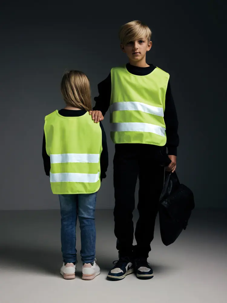 Fabriqué en PET recyclé (55 % de contenu recyclé, certifié GRS), ce gilet allie durabilité environnementale et visibilité accrue. Idéal pour les organisateurs d'événements et les entreprises soucieuses de l'écologie et de la sécurité des plus jeunes.