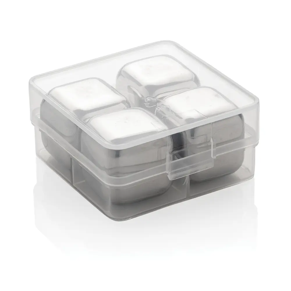 Découvrez nos glaçons réutilisables en acier inoxydable, présentés dans une boîte cadeau élégante contenant 4 pièces de 2,5 x 2,5 x 2,5 cm. Idéaux pour les professionnels du marketing et les organisateurs d'événements, ces cubes innovants refroidissent vos boissons préférées sans les diluer, préservant ainsi leur goût authentique et offrant une expérience premium à vos clients.