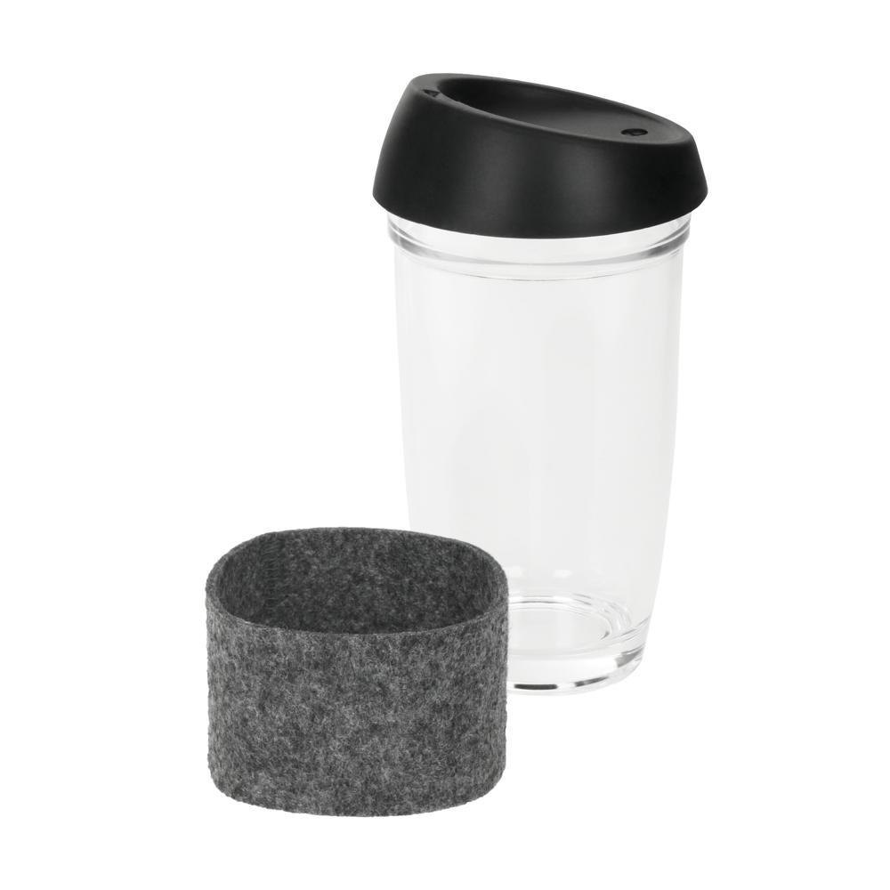 Avec sa contenance généreuse d'environ 0,5 litre et son diamètre de 90 mm, ce grand gobelet convient parfaitement aux boissons chaudes ou froides lors d'événements ou comme outil promotionnel. Le couvercle en silicone s'emboîte fermement et dispose d'une ouverture pratique pour boire sans renverser.