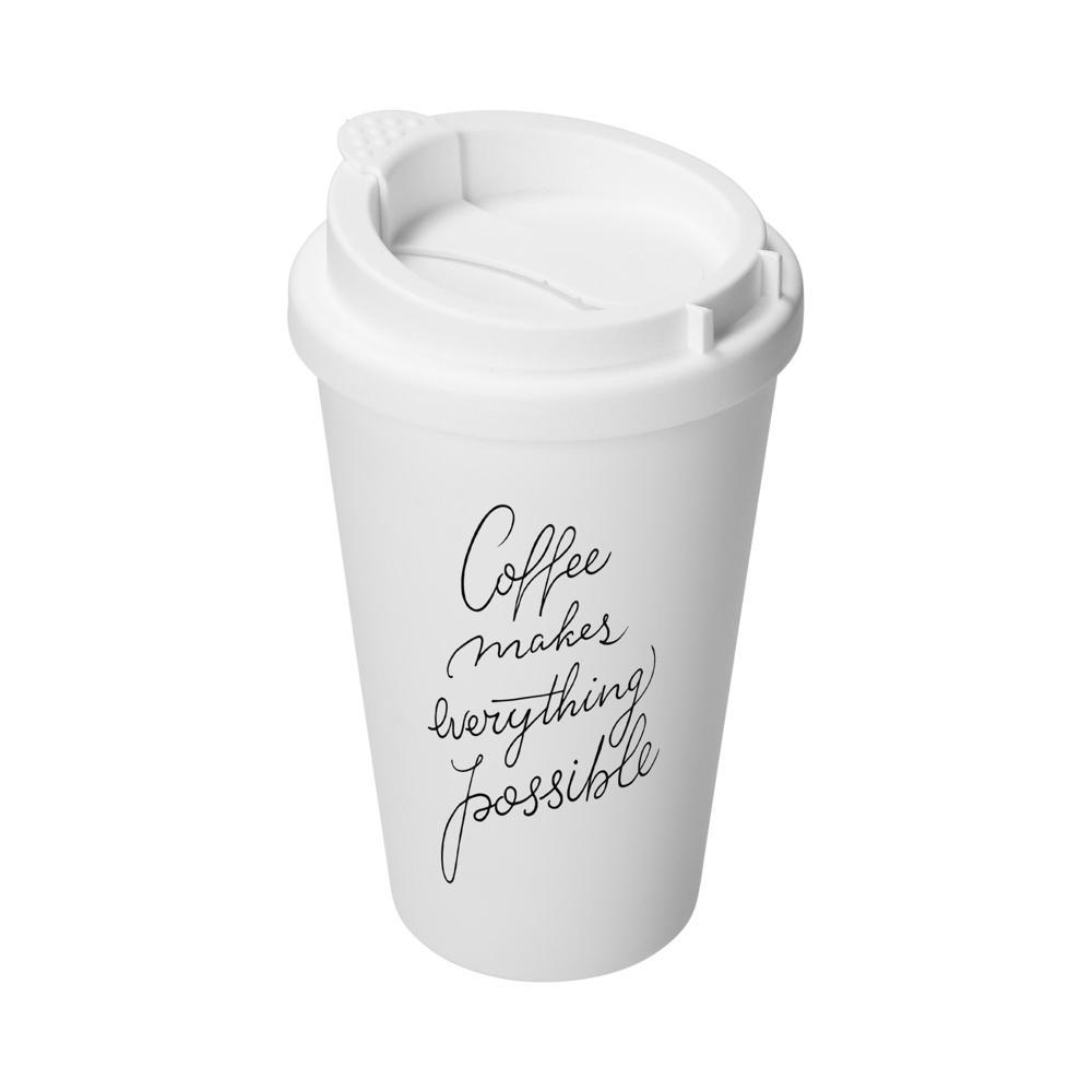 Découvrez ce gobelet à café compact en plastique à double paroi, parfait pour vos campagnes promotionnelles, événements et goodies d'entreprise. Avec son volume de 0,35 litre et un diamètre de 95 mm, il s'adapte idéalement aux porte-gobelets automobiles les plus courants.