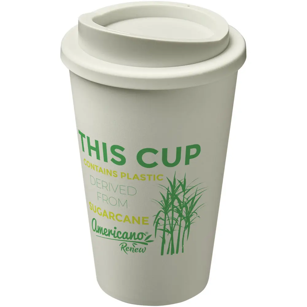 Découvrez le gobelet isolant Americano® Renew de 350 ml, idéal pour les campagnes marketing et événements d'entreprise. Avec son isolation à double paroi, il maintient vos boissons chaudes ou froides plus longtemps, offrant un confort optimal à vos clients et partenaires. Fabriqué à 25 % en bioplastique issu de la canne à sucre, un matériau renouvelable qui réduit l'usage de pétrole et absorbe le CO₂, ce gobelet est 100 % recyclable et conforme aux normes environnementales. Sans BPA, il résiste au lave-vaisselle et au micro-ondes pour une utilisation quotidienne durable. Personnalisez-le avec votre logo pour booster votre visibilité : un cadeau promotionnel écologique et pratique qui renforce l'image verte de votre marque. Dimensions : 15,4 x Ø 9,45 cm. Matériau : 75 % PP et 25 % bioplastique de canne à sucre. Produit en Europe.
