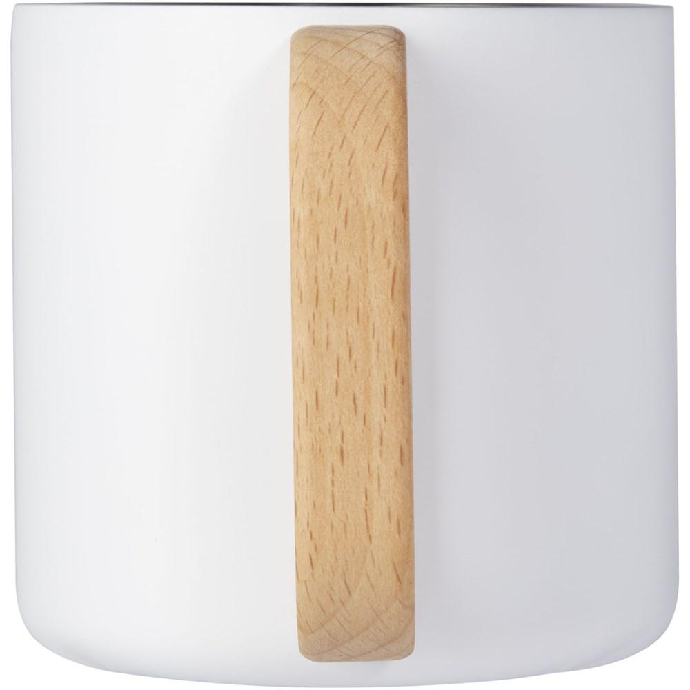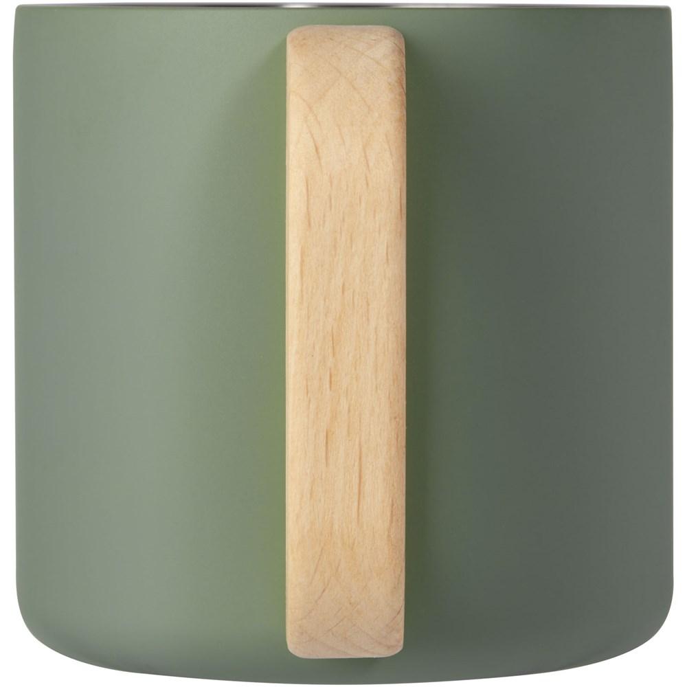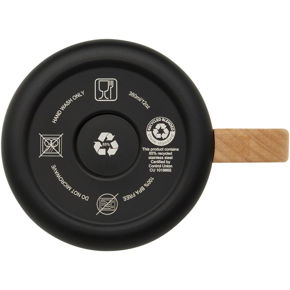 Découvrez la tasse Bjorn de 360 ml recyclée RCS avec isolation sous vide et couche de cuivre, un choix premium pour vos campagnes marketing et événements. Fabriquée en acier inoxydable recyclé certifié RCS avec une poignée en bois de hêtre issu de sources responsables, elle allie durabilité et élégance pour renforcer votre image de marque écologique.