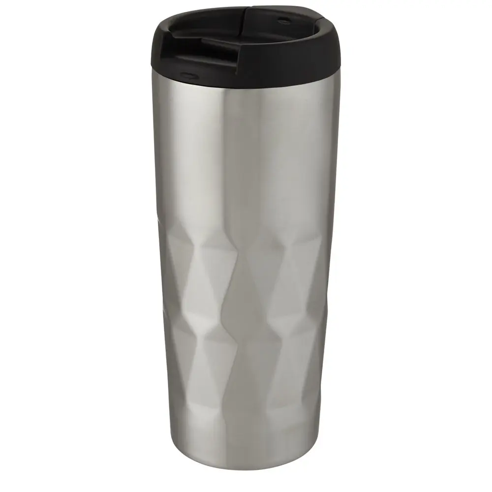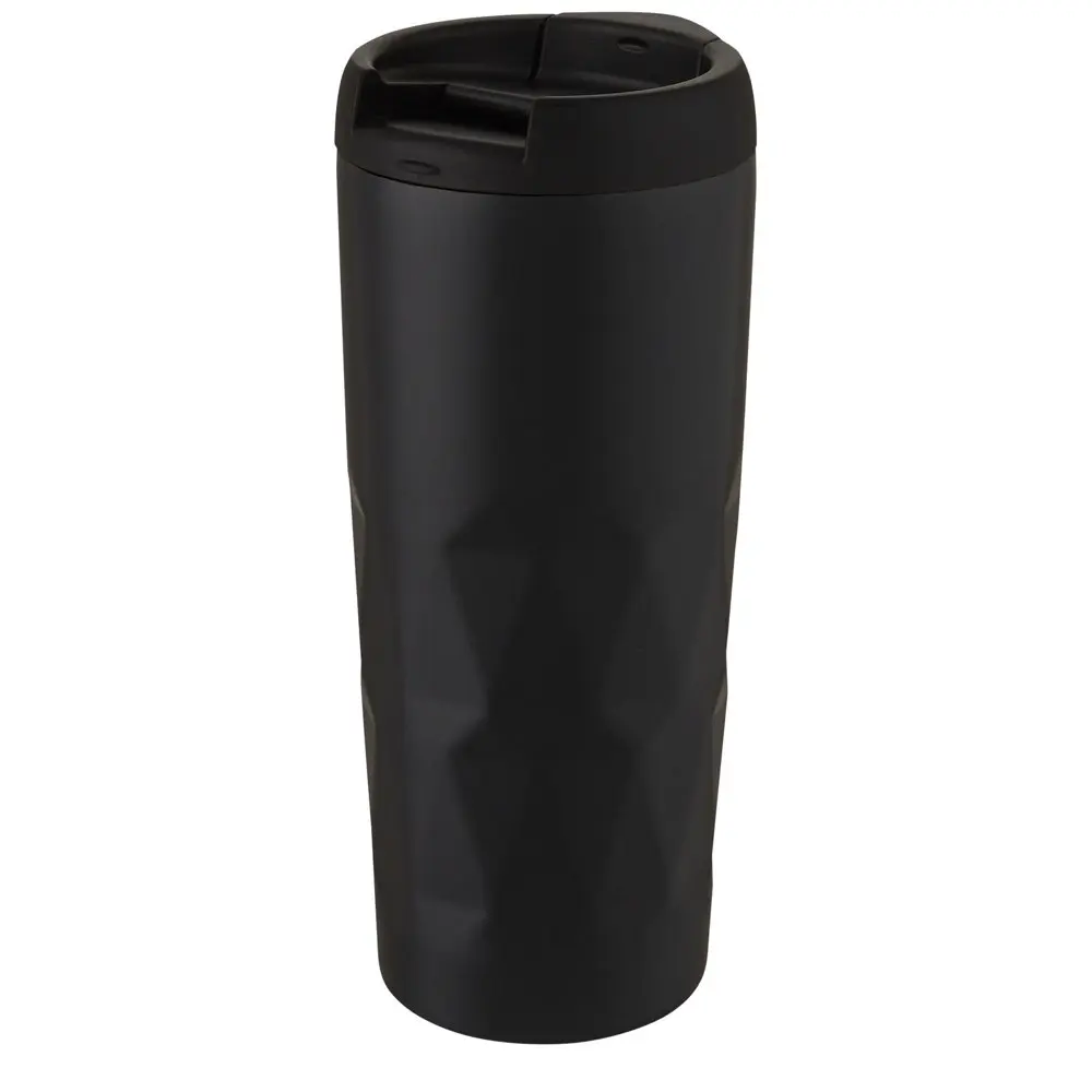 Découvrez le gobelet Prism de 450 ml, un cadeau promotionnel idéal pour marquer les esprits lors d'événements ou campagnes marketing. Sa double paroi en acier inoxydable 18/8 avec isolation sous vide et couche de cuivre maintient les boissons chaudes ou froides pendant des heures, offrant un confort optimal à vos clients. Le design géométrique élaboré et le couvercle étanche vissé ajoutent une touche élégante et pratique.
