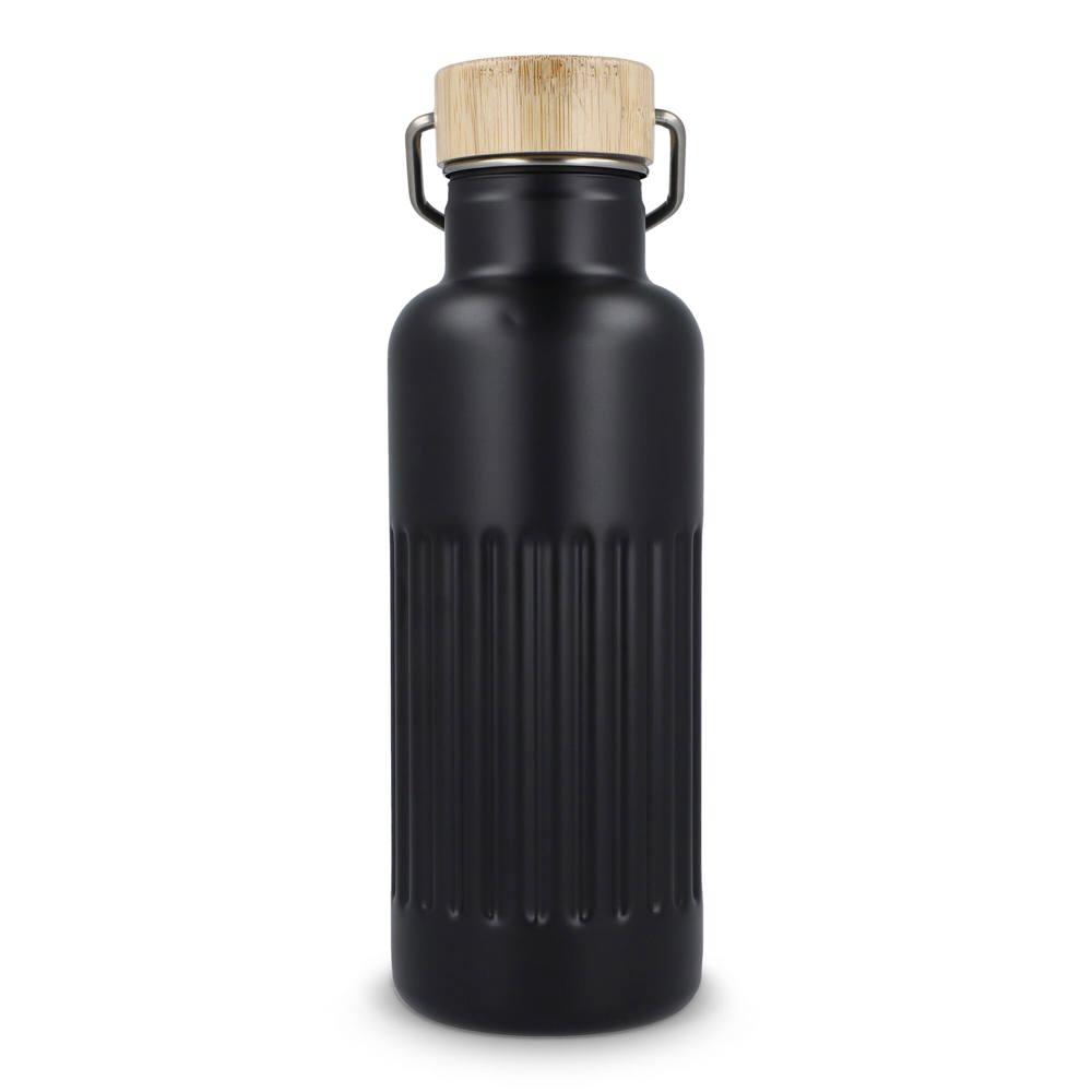 Découvrez notre bouteille isotherme en acier inoxydable recyclé de 500 ml, équipée d'un couvercle en bambou anti-fuites pour une utilisation sans souci. Son design moderne avec motif rayé séduit par son élégance contemporaine. Chaque exemplaire est présenté dans un coffret cadeau prêt à offrir, parfait pour impressionner vos clients.