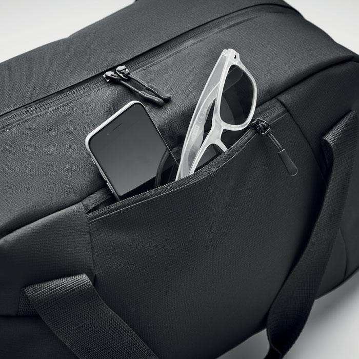 Découvrez ce sac de voyage-sport robuste en 300D ripstop, idéal pour les événements professionnels et les campagnes marketing. Avec ses détails en PU et sa poche frontale zippée, il offre un rangement pratique et sécurisé. À l'intérieur, une poche dédiée et deux petits compartiments rembourrés protègent vos objets fragiles comme un smartphone ou des lunettes.